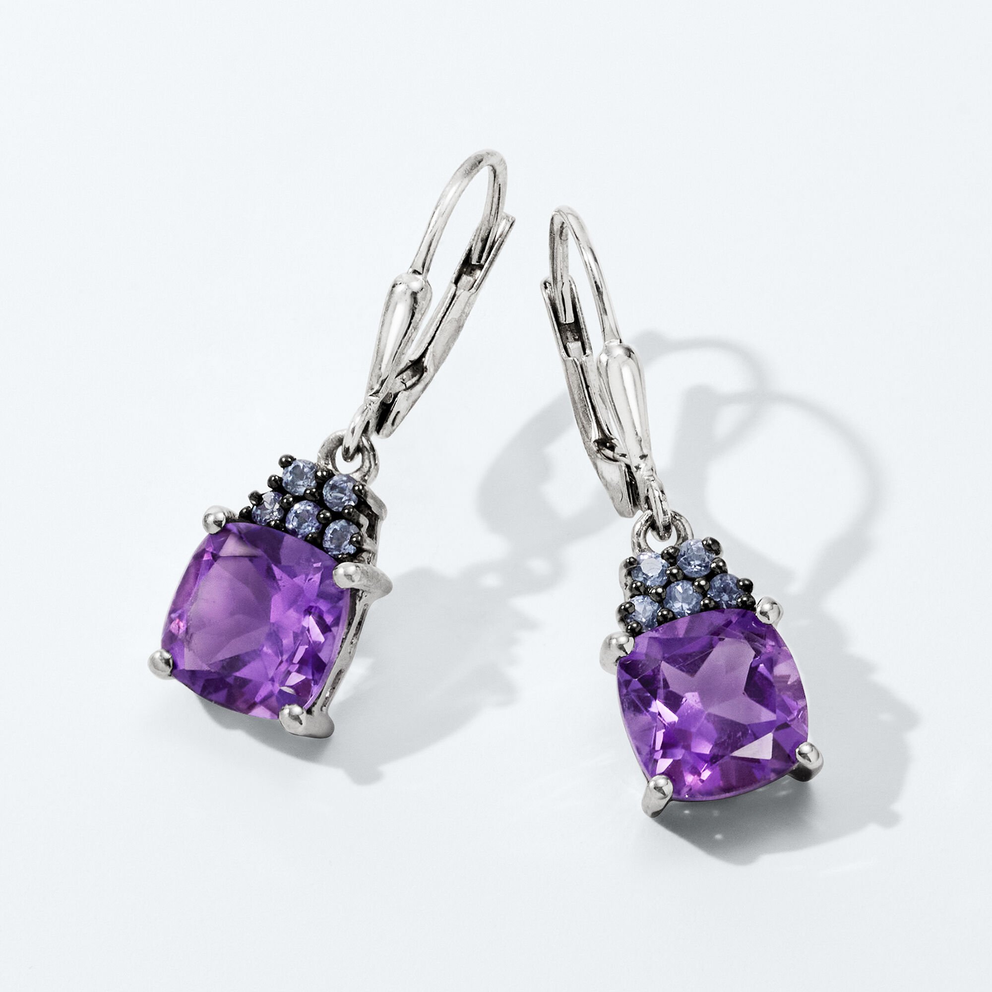 3.40 ct. t.w. Amethyst and .30 ct. t.w. Tanzanite Drop Earrings in Sterling Silver