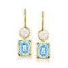 5mm Cultured Pearl and 3.40 ct. t.w. Sky Blue Topaz Drop Earrings in 18kt Gold Over Sterling
