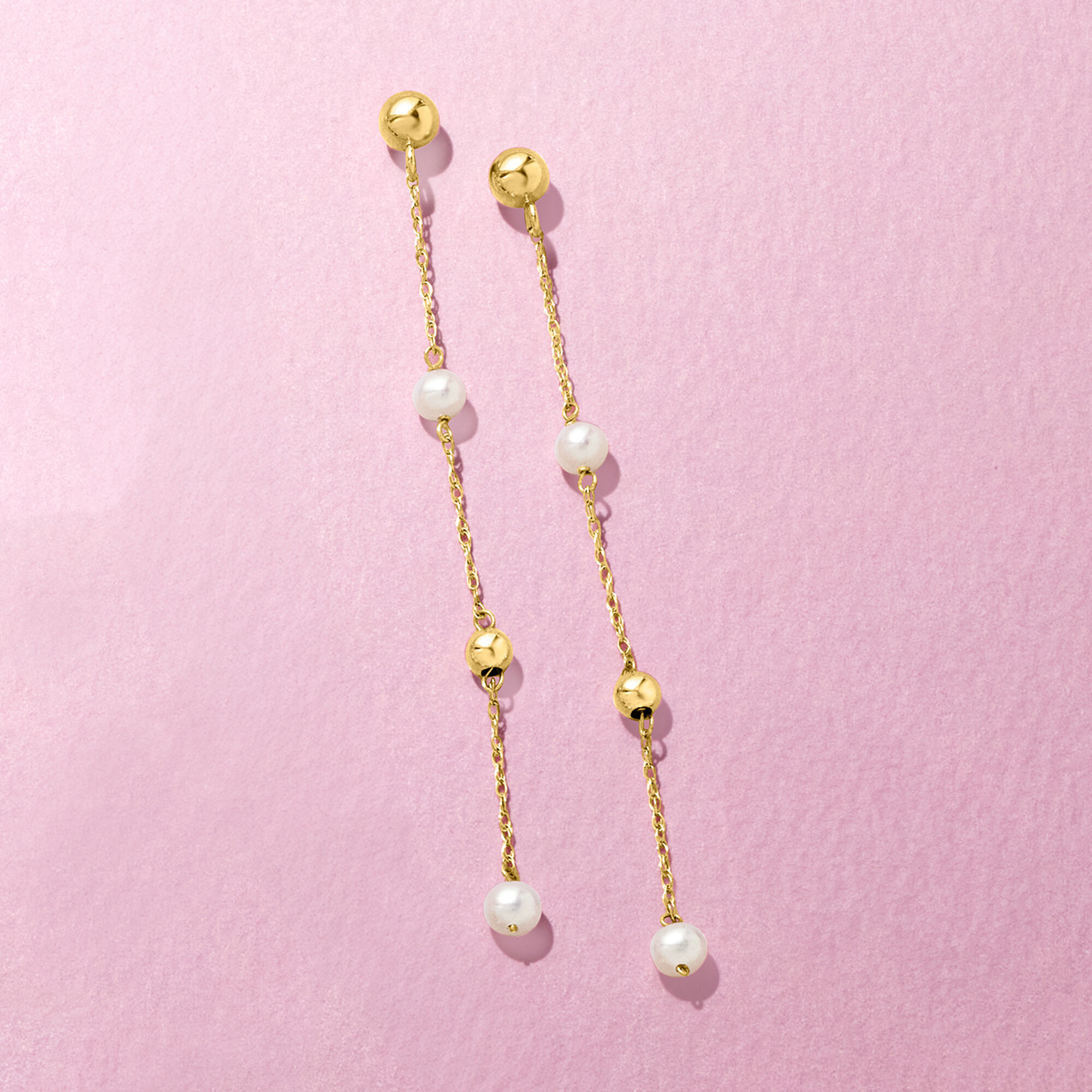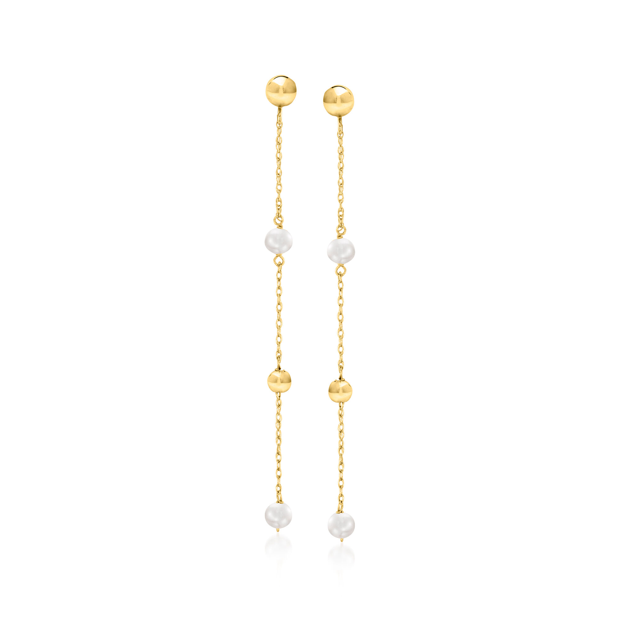 3-4mm Cultured Pearl and Bead Station Drop Earrings in 14kt Yellow Gold