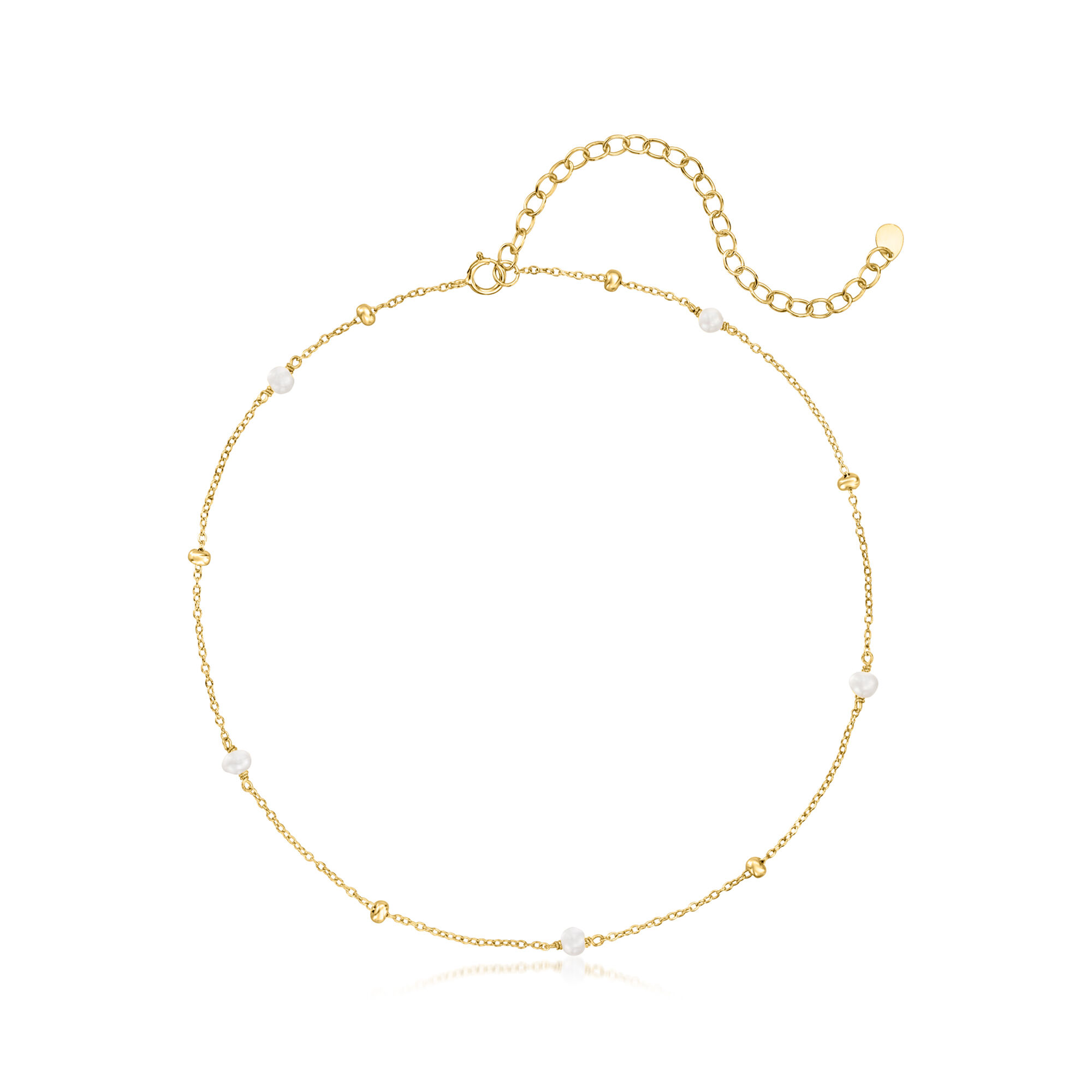 3.5-4mm Cultured Pearl and 18kt Gold Over Sterling Station Choker Necklace. 12″