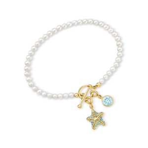 3.5-4mm Cultured Pearl Charm-Compatible Toggle Bracelet in 18kt Gold Over Sterling