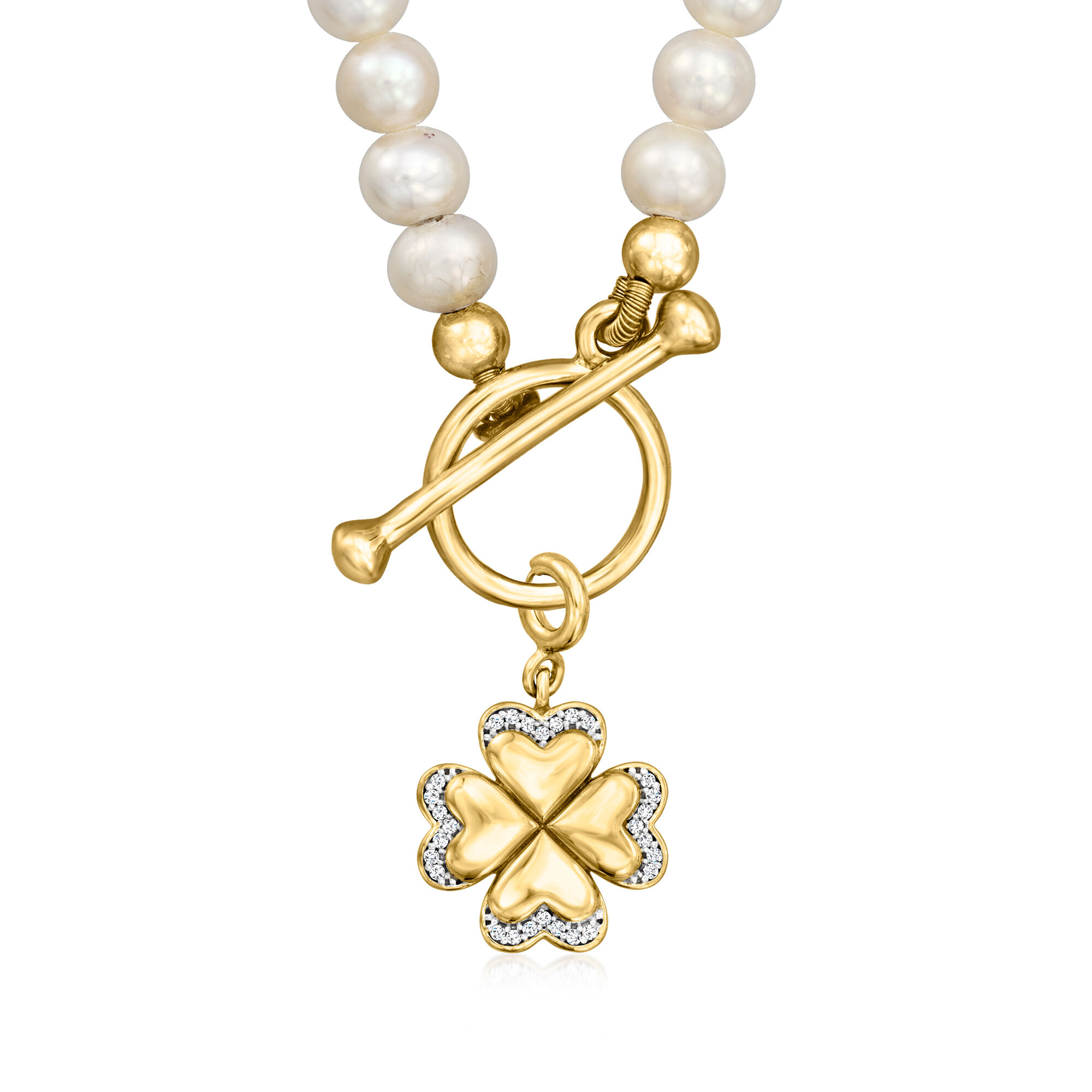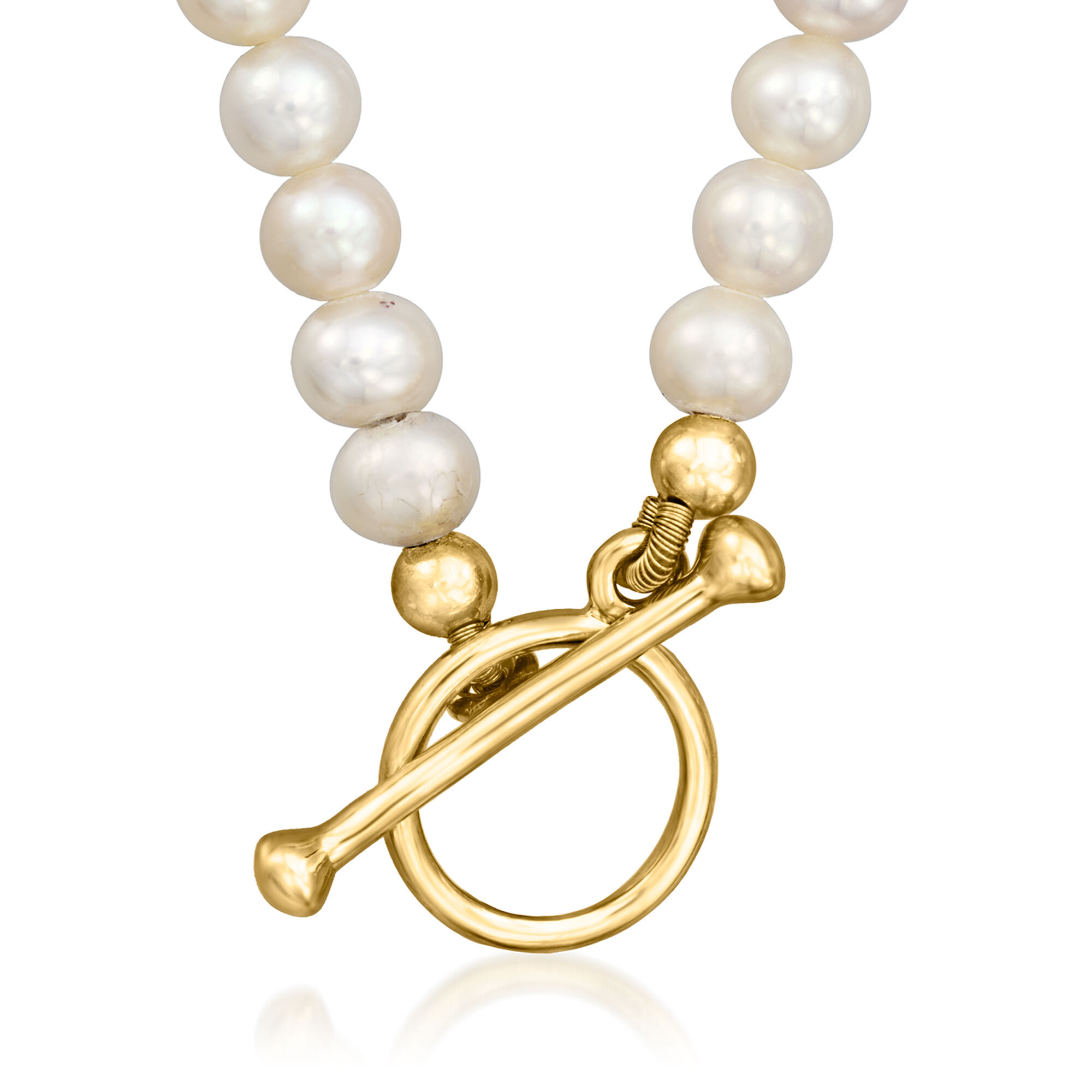 3.5-4mm Cultured Pearl Charm-Compatible Toggle Necklace in 18kt Gold Over Sterling