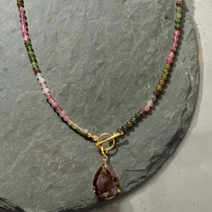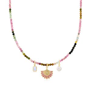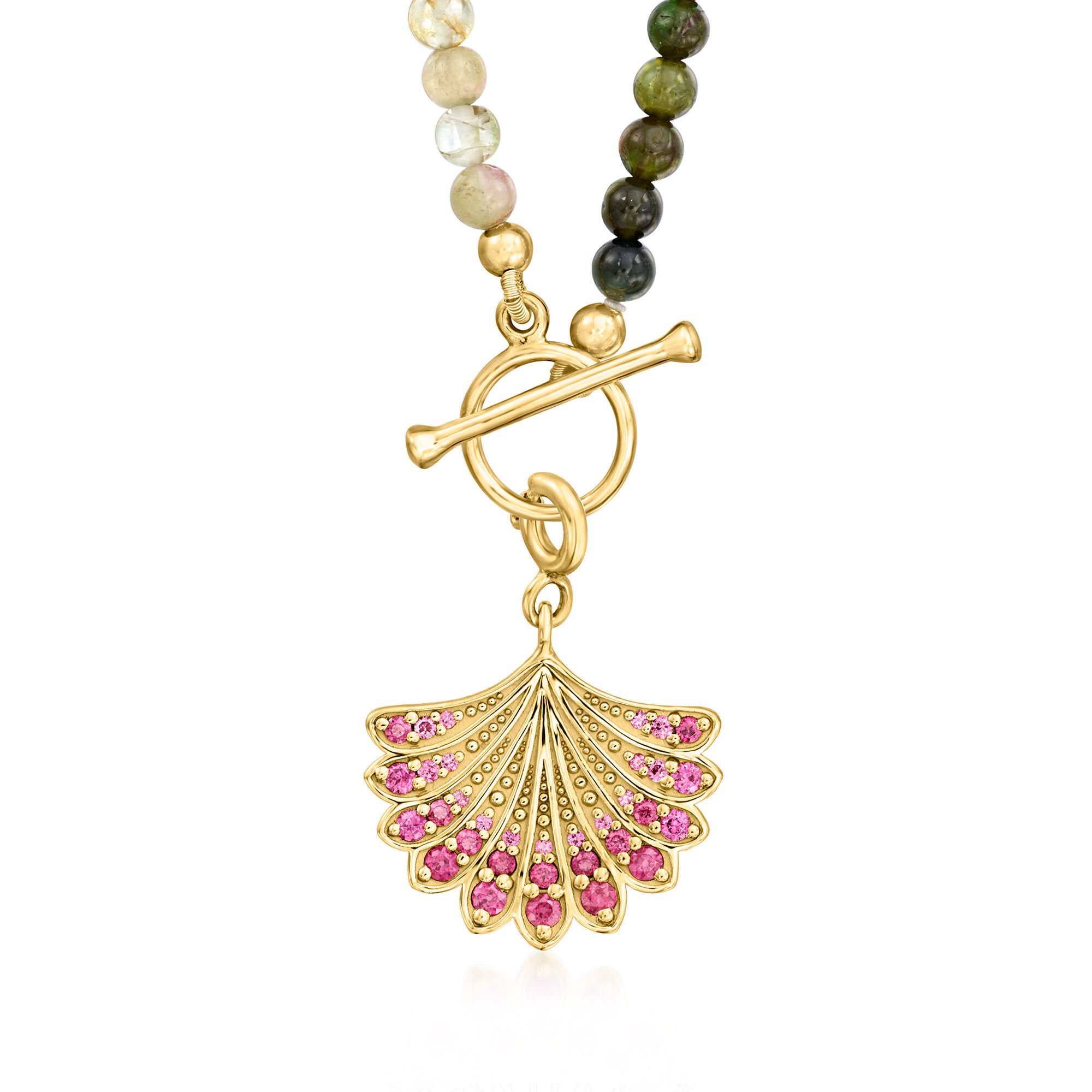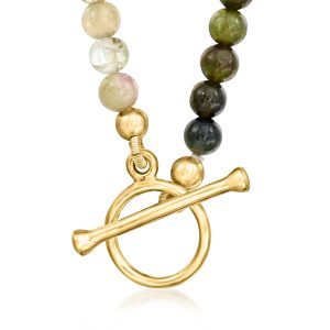 3.5-4mm Multicolored Tourmaline Bead Charm-Compatible Toggle Necklace in 18kt Gold Over Sterling