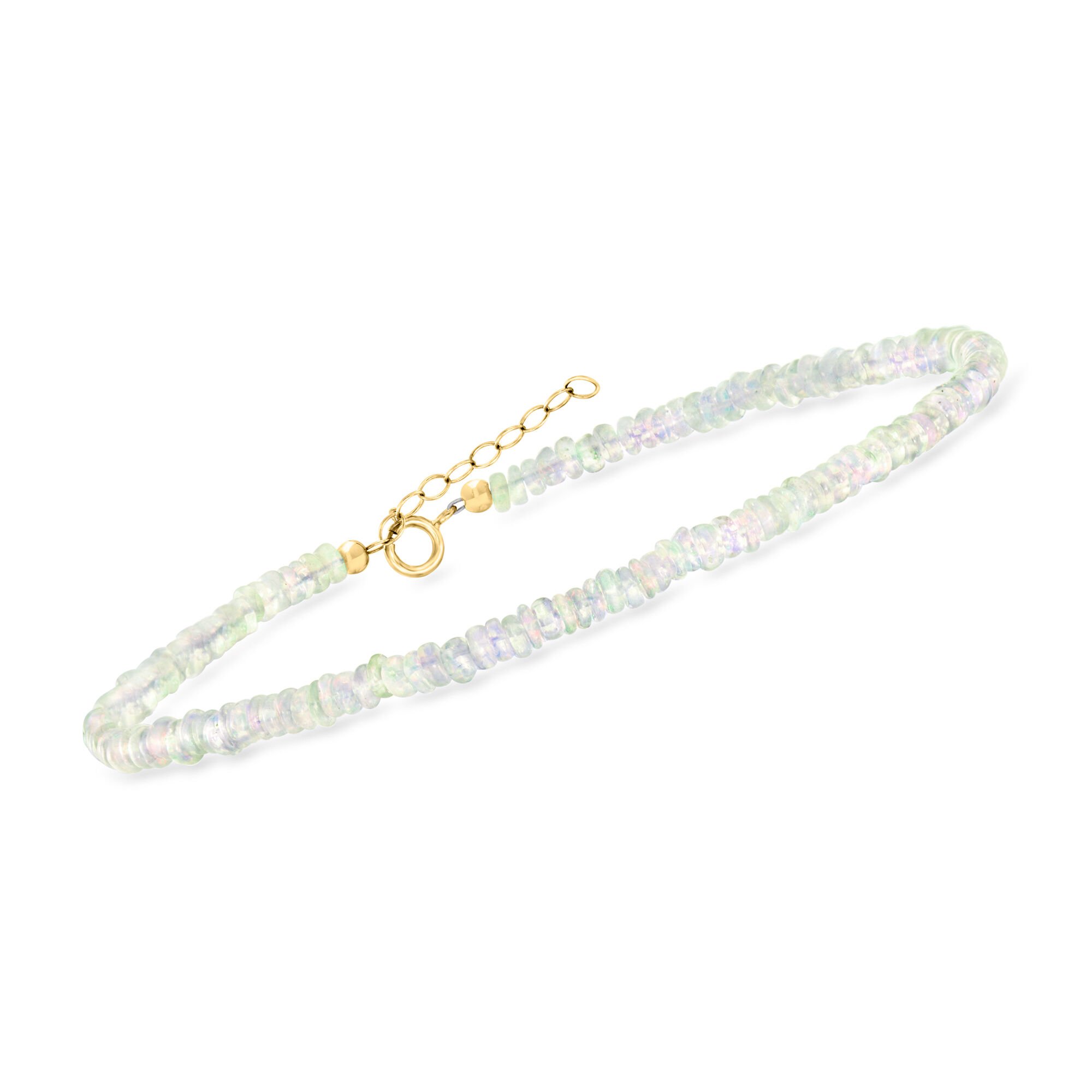 3.5-4mm Opal Bead Anklet in 14kt Yellow Gold. 9″