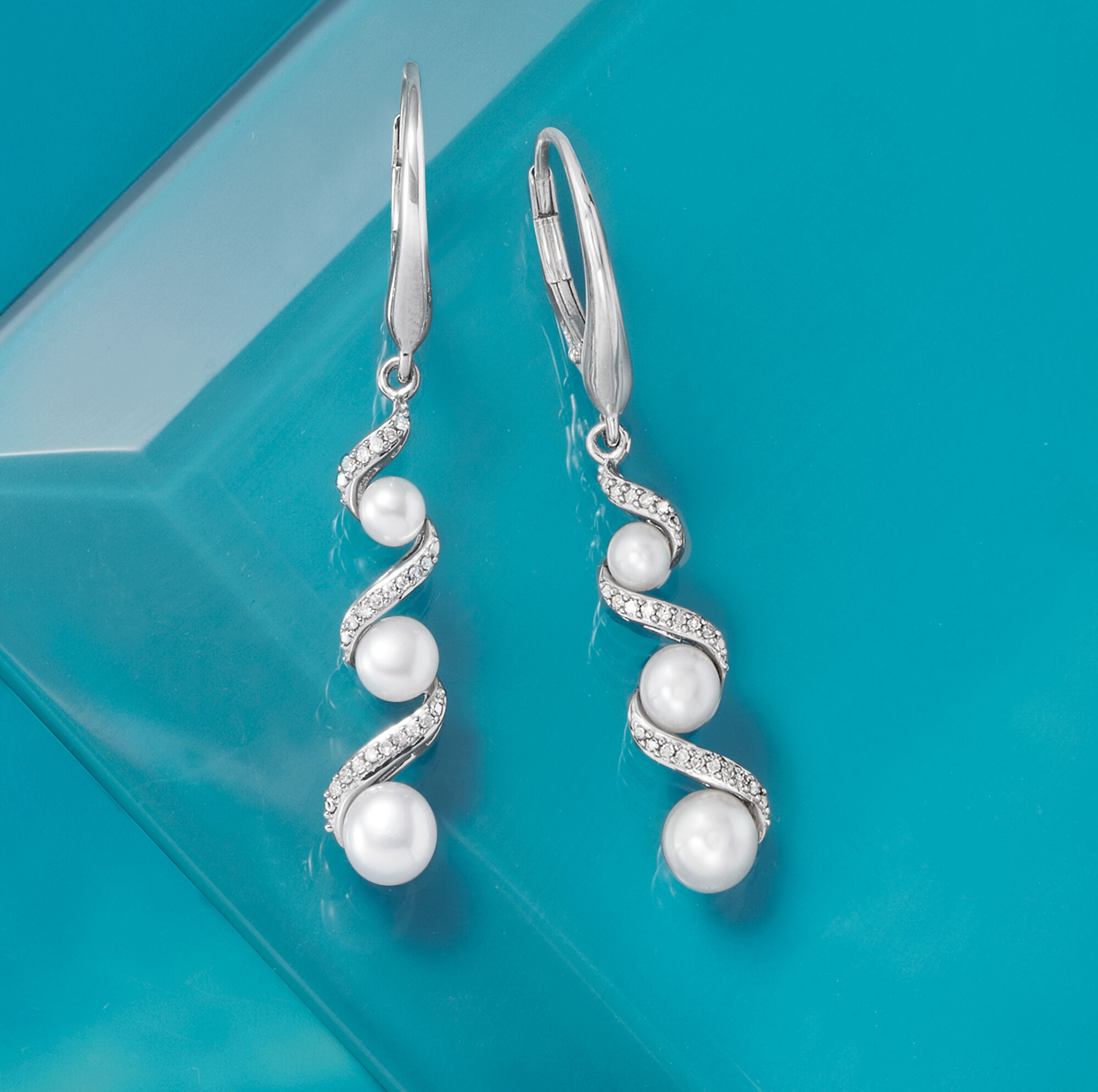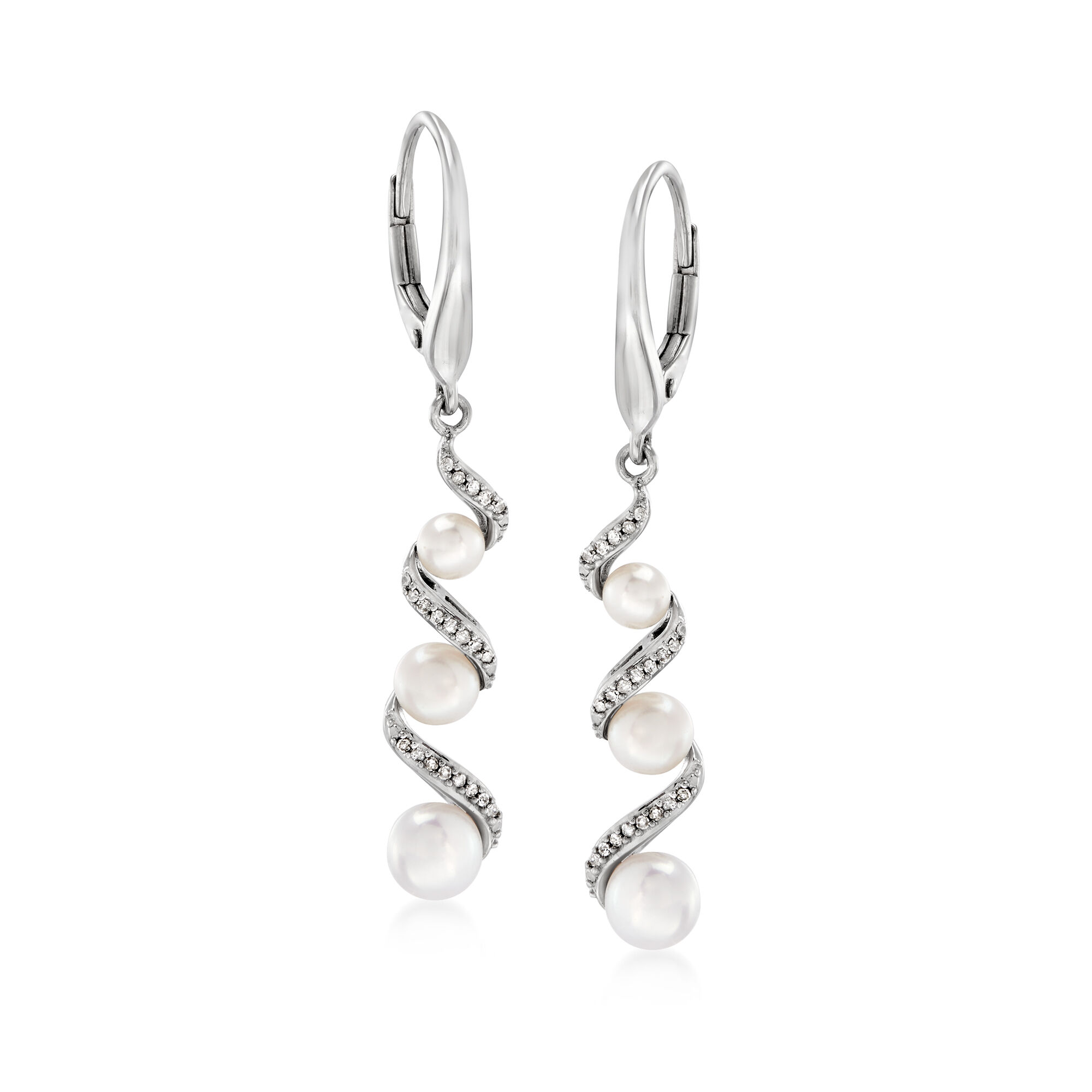 3.5-5mm Cultured Pearl and .10 ct. t.w. Diamond Drop Earrings in Sterling Silver
