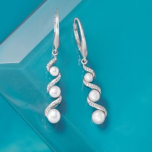8-8.5mm Cultured Pearl and Diamond Swirl Earrings in Sterling Silver