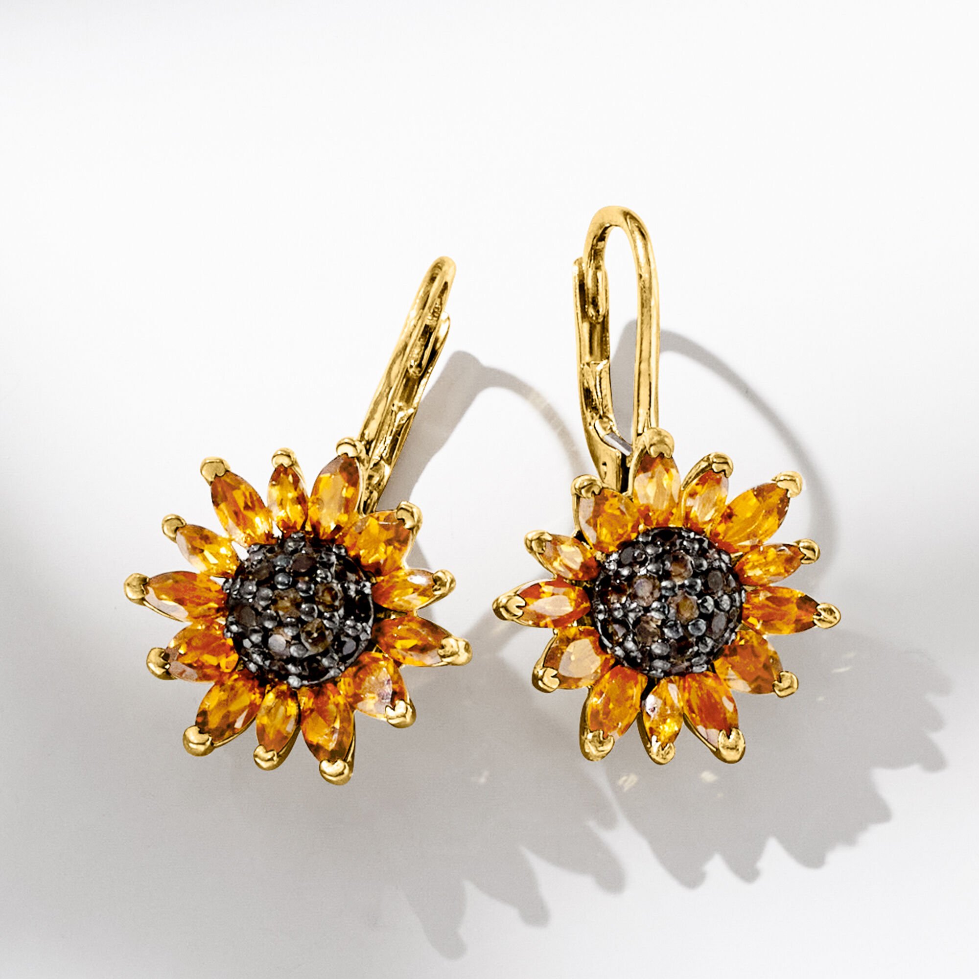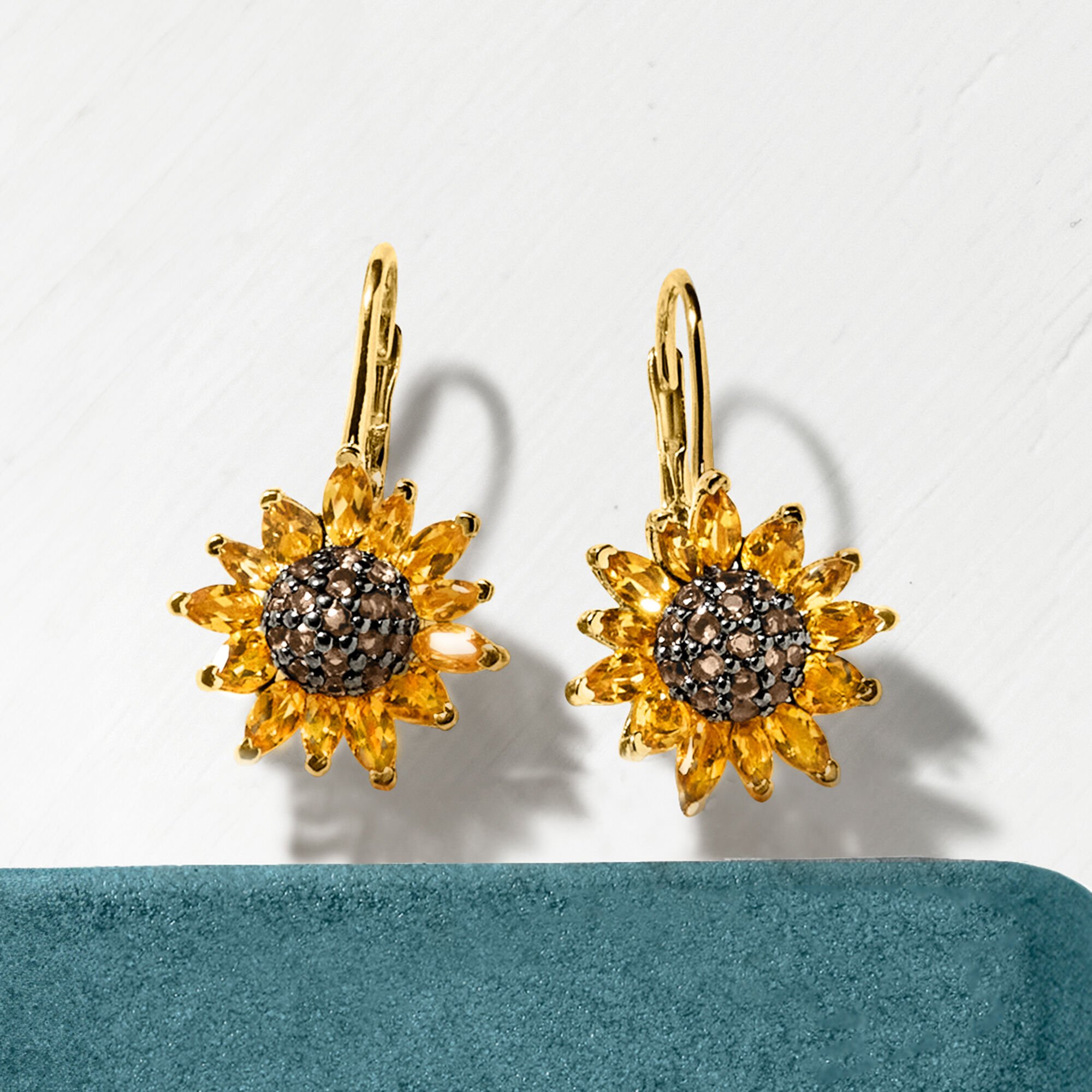 3.50 ct. t.w. Citrine and .80 ct. t.w. Smoky Quartz Sunflower Drop Earrings in 18kt Gold Over Sterling