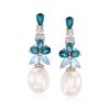 5mm Cultured Pearl and 3.40 ct. t.w. Sky Blue Topaz Drop Earrings in 18kt Gold Over Sterling