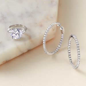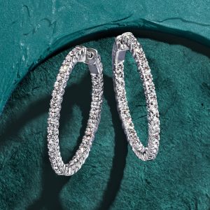 3.70 ct. t.w. CZ Inside-Outside Hoop Earrings in Sterling Silver. 1 3/8″
