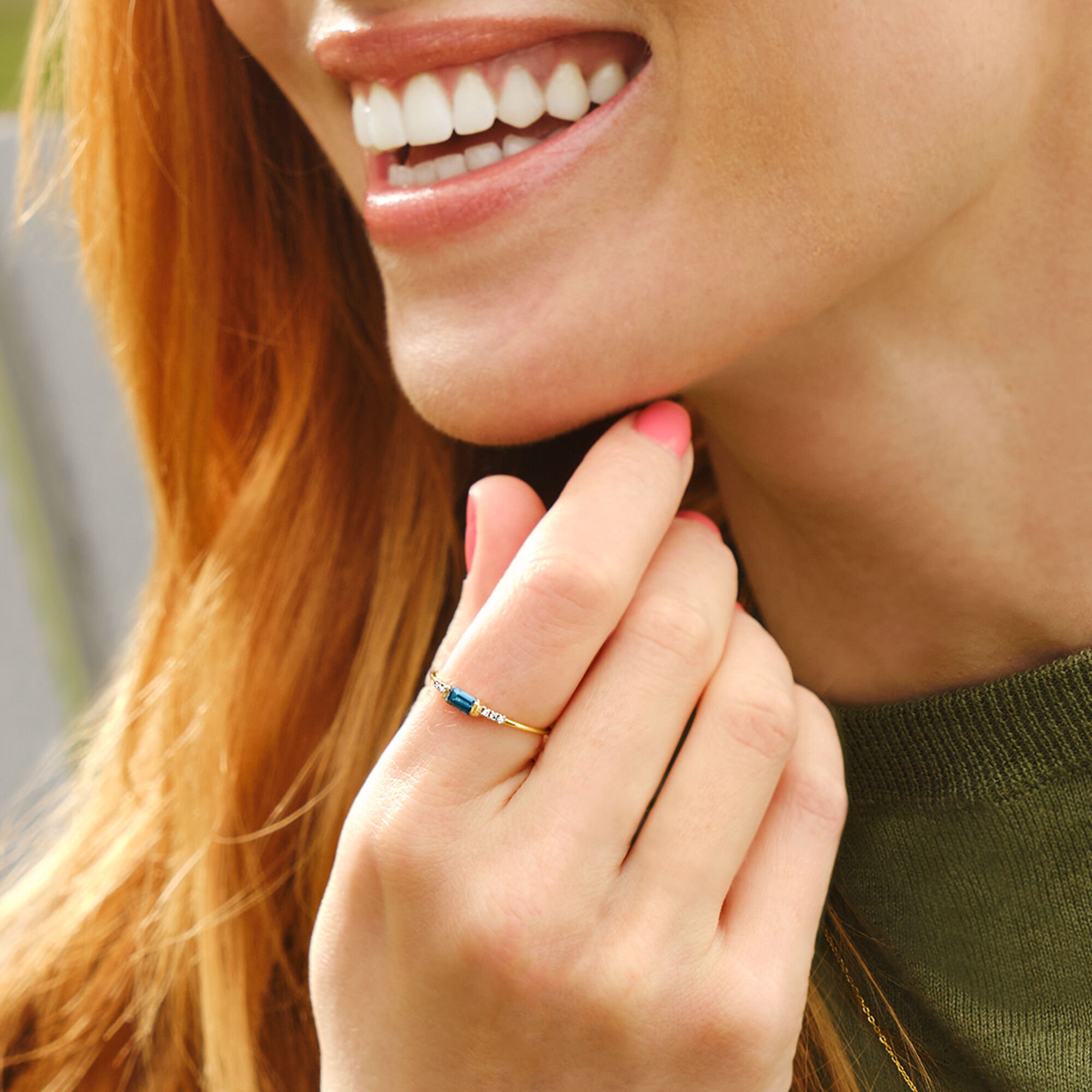 Topaz ( Color: London Blue, Quantity: 1, Shape & Cutting Style: Emerald, Weight: 0.30 carats, Size: 5×3 mm) |