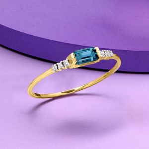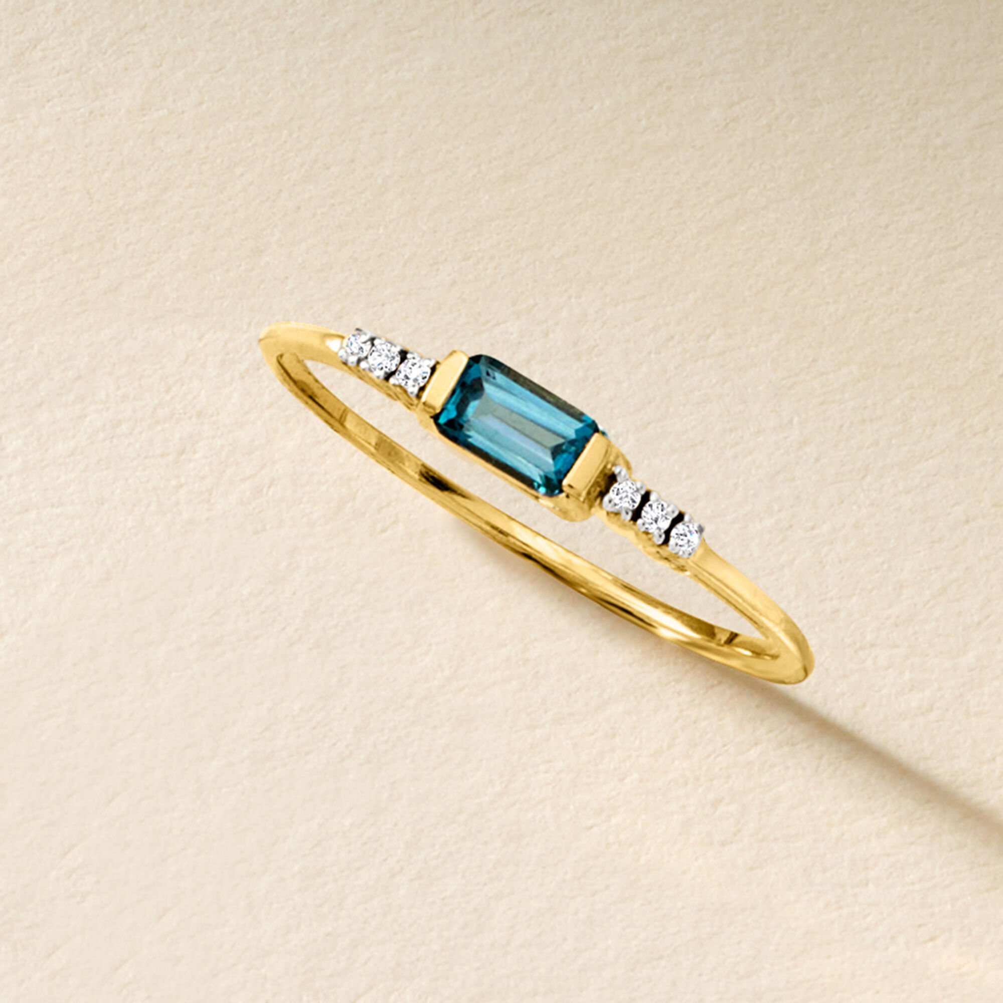 .30 Carat London Blue Topaz Ring with Diamonds in 14kt Yellow Gold
