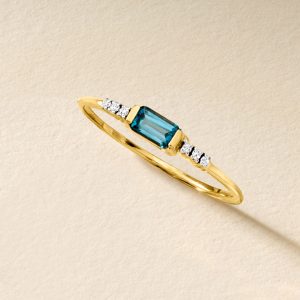 Topaz ( Color: London Blue, Quantity: 1, Shape & Cutting Style: Emerald, Weight: 0.30 carats, Size: 5×3 mm) |