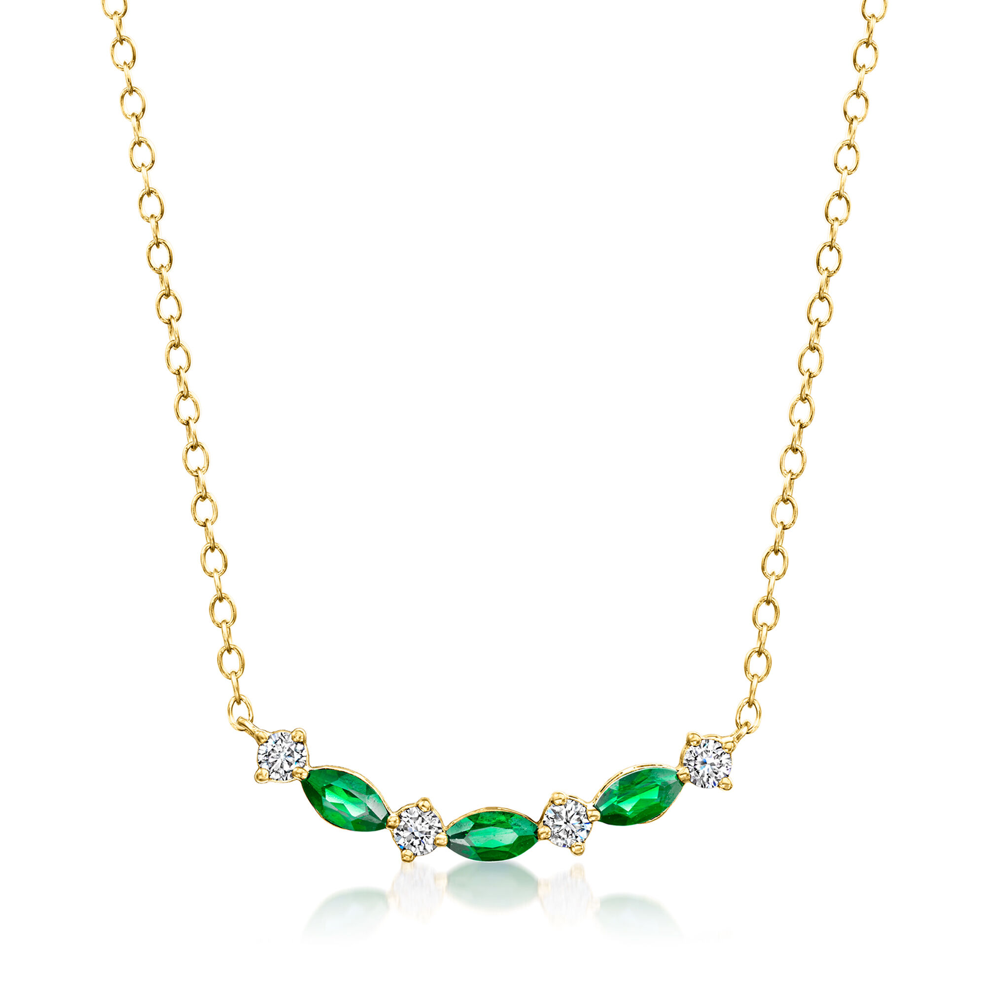 .30 ct. t.w. Lab-Grown Emerald and .20 ct. t.w. Lab-Grown Diamond Necklace in 18kt Gold Vermeil. 16″