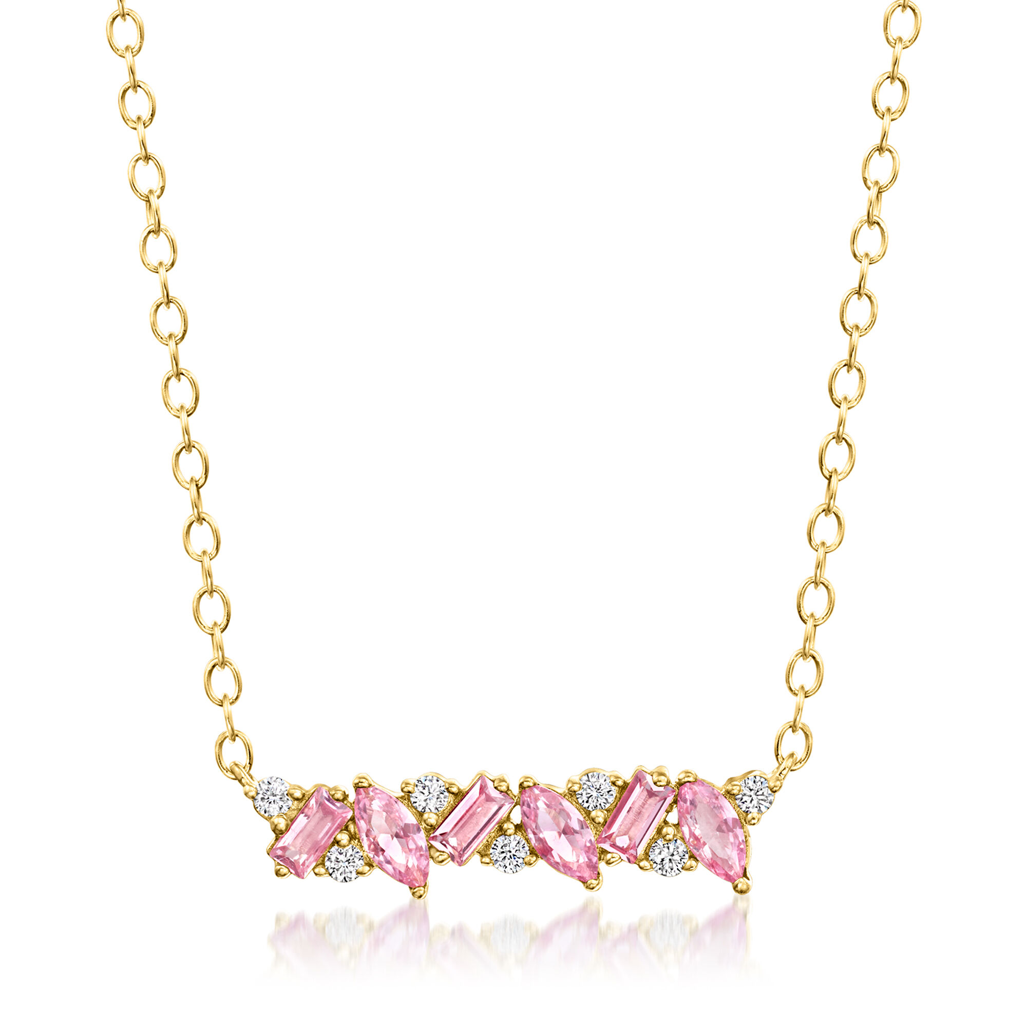 .30 ct. t.w. Lab-Grown Pink Sapphire Necklace with Lab-Grown Diamonds in 18kt Gold Vermeil. 16″