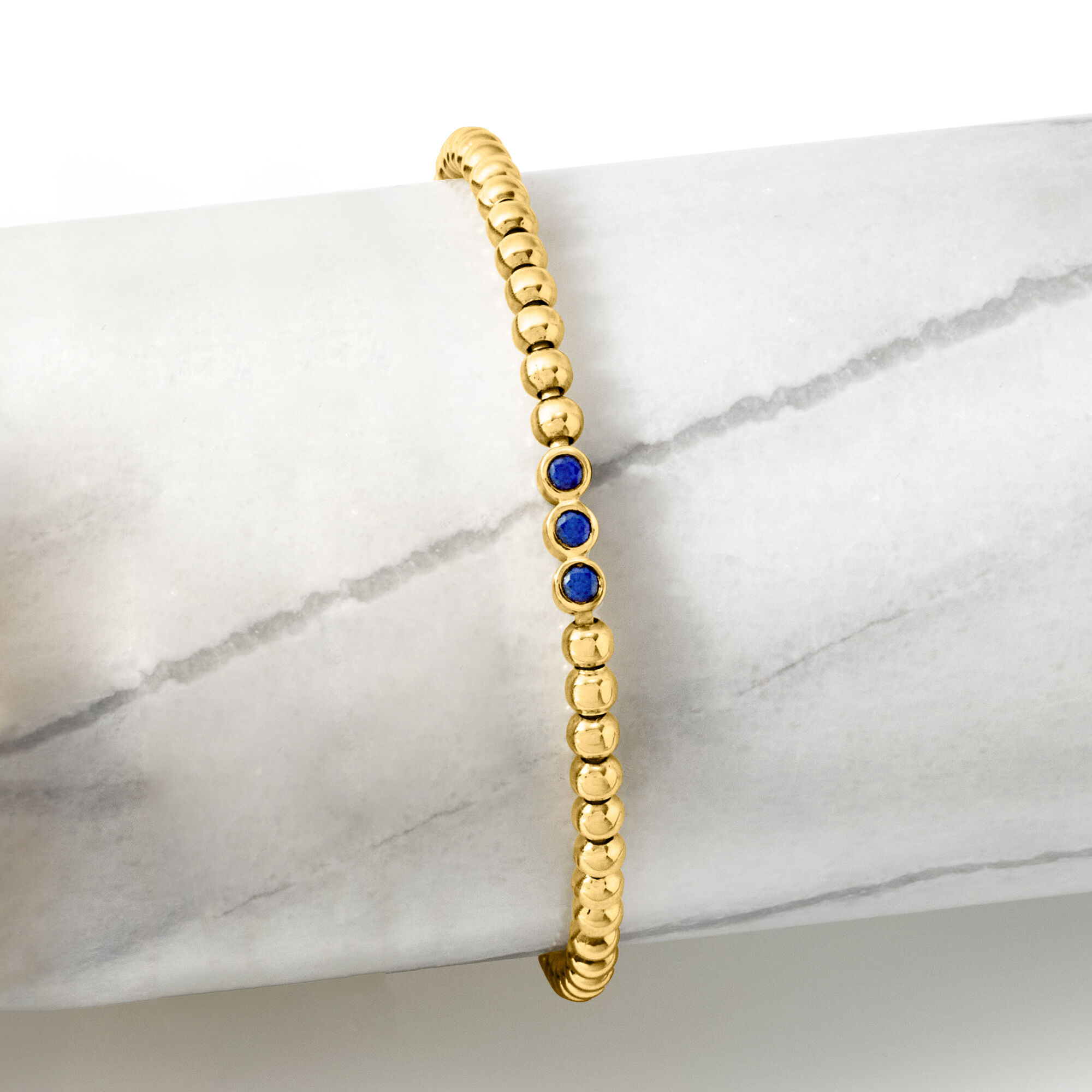 .30 ct. t.w. Lab-Grown Sapphire and 4mm 18kt Gold Vermeil Bead Stretch Bracelet