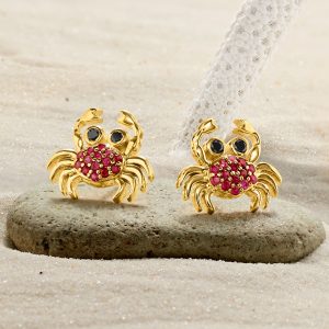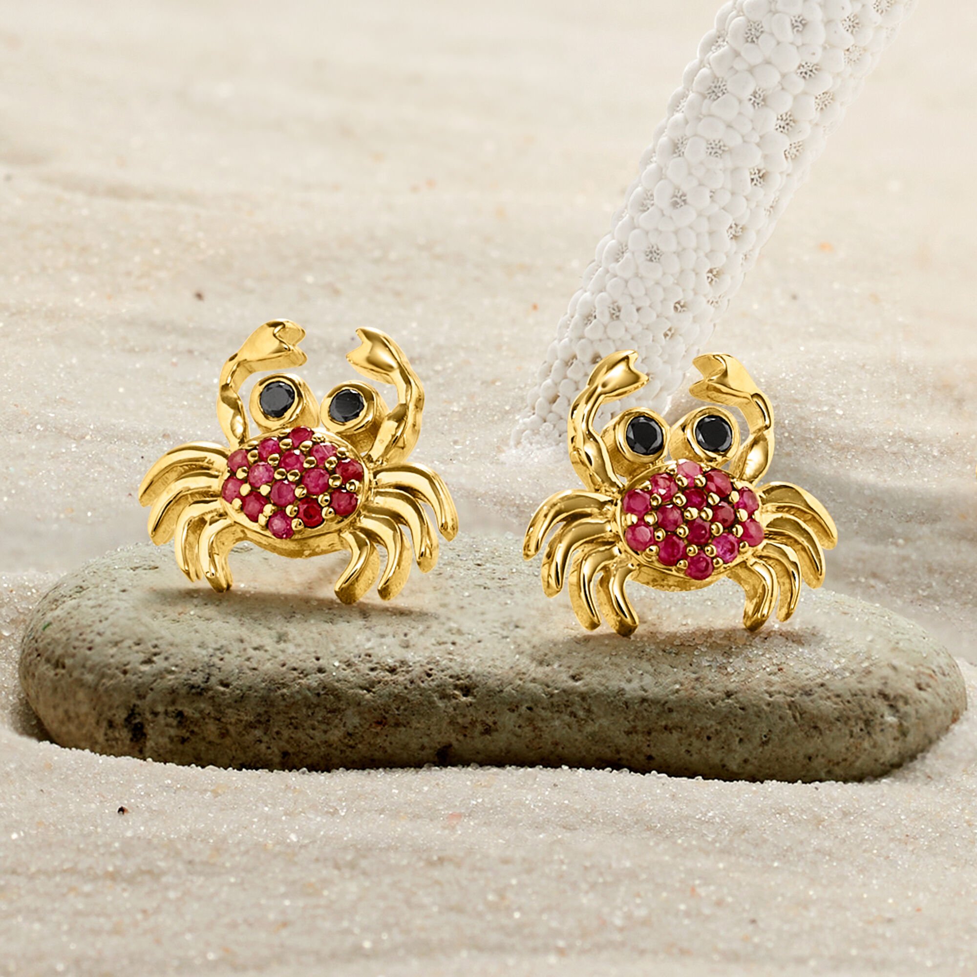 .30 ct. t.w. Ruby and .10 ct. t.w. Black Spinel Crab Earrings in 18kt Gold Over Sterling