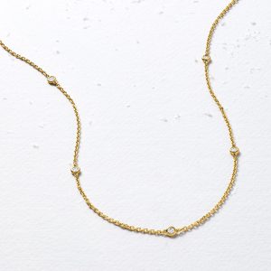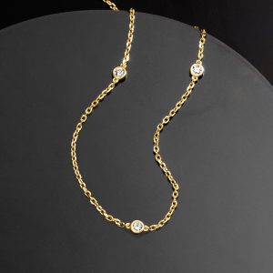 .25 Carat Bezel-Set Lab-Grown Diamond Solitaire Necklace in 14kt Yellow Gold. 16″