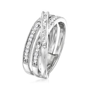 .33 ct. t.w. Round and Baguette Diamond Crisscross Ring in Sterling Silver