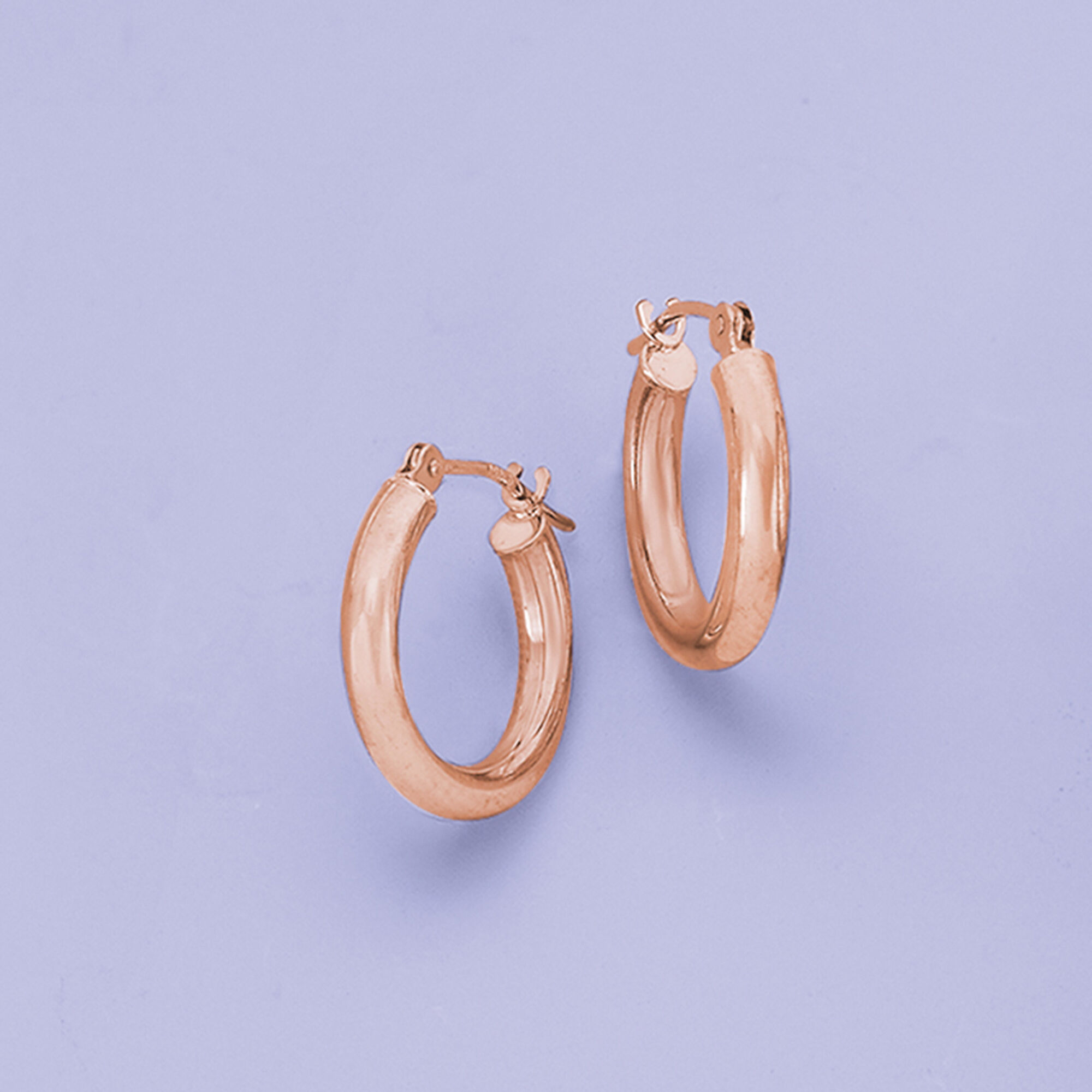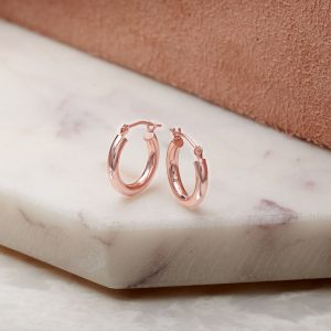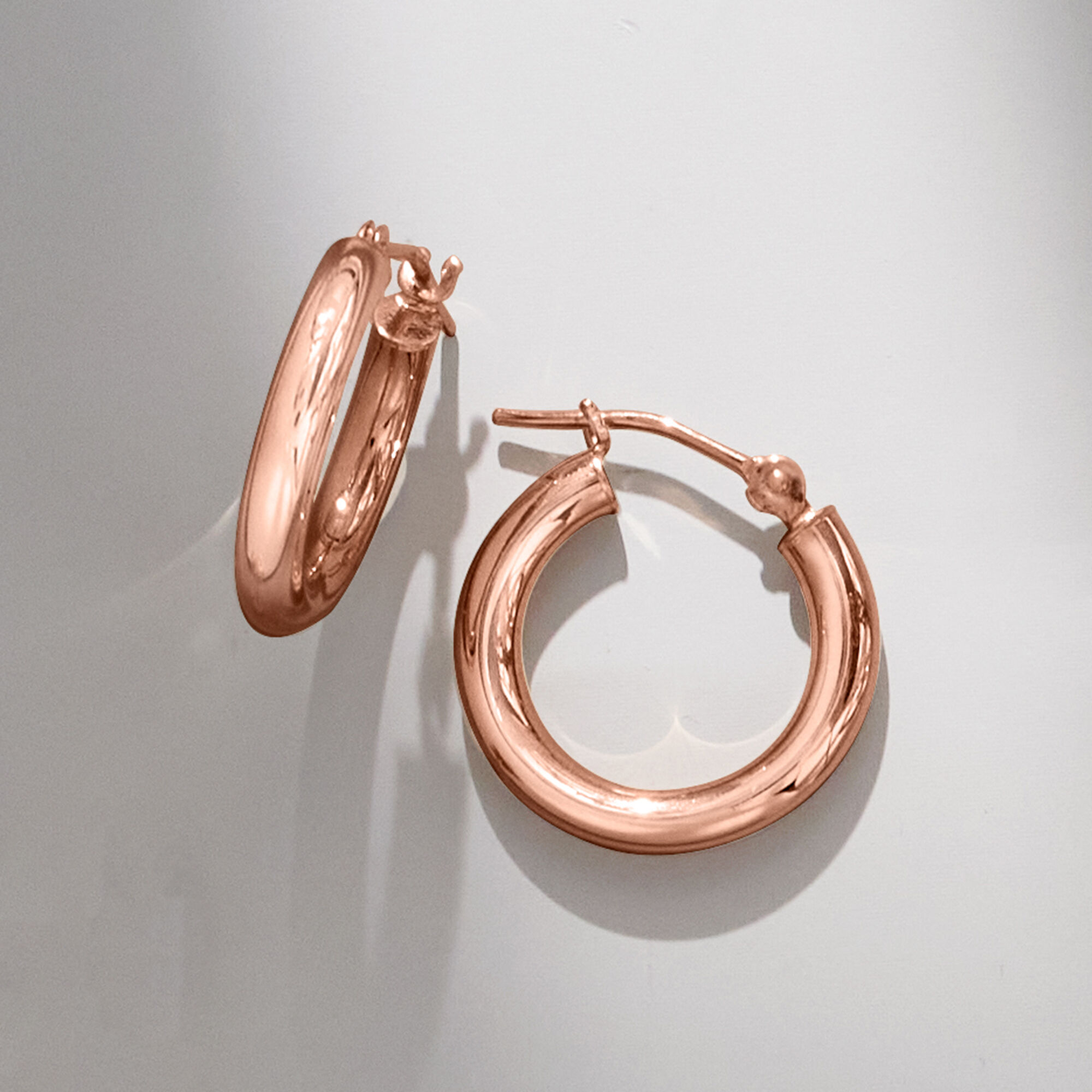 3mm 14kt Rose Gold Hoop Earrings. 1/2″