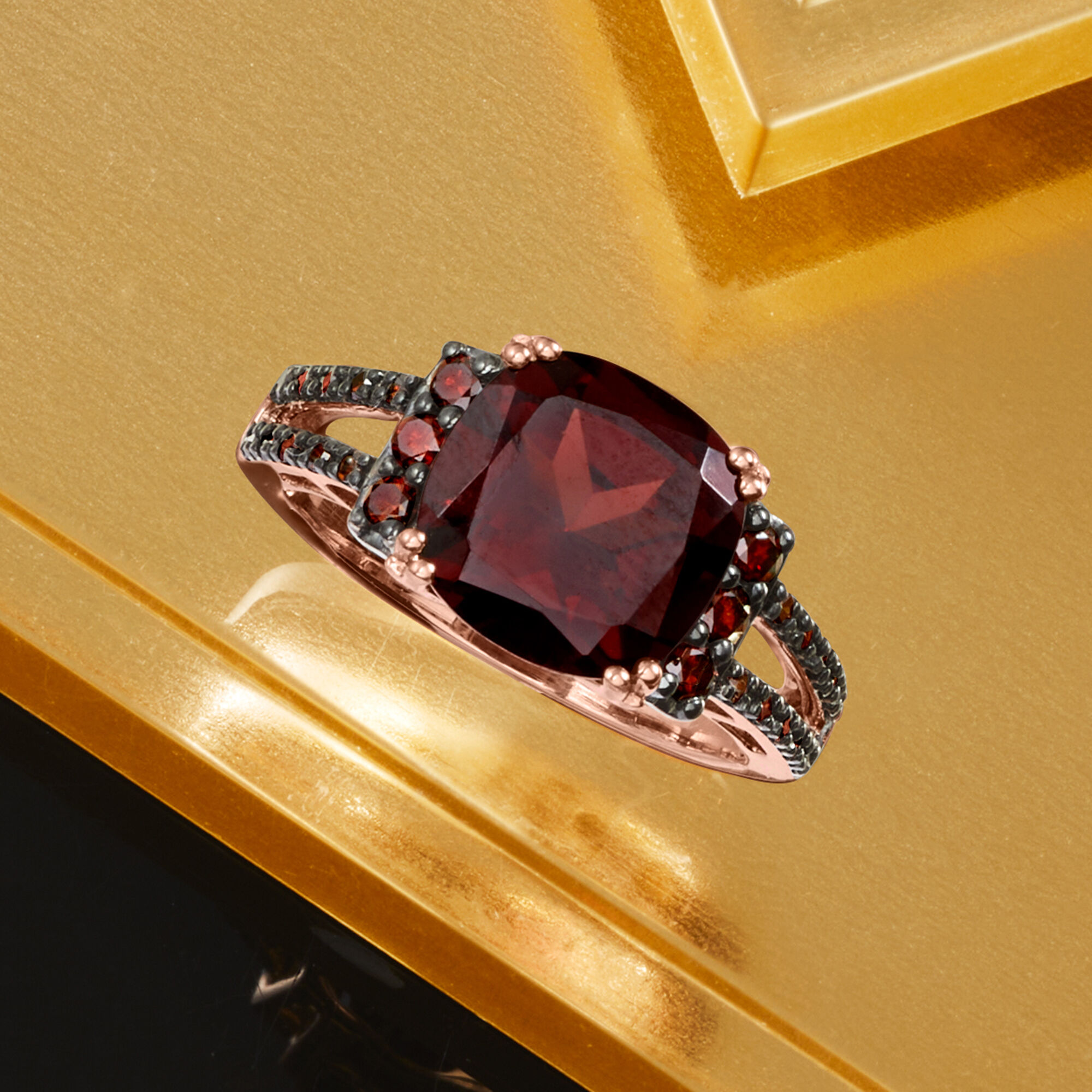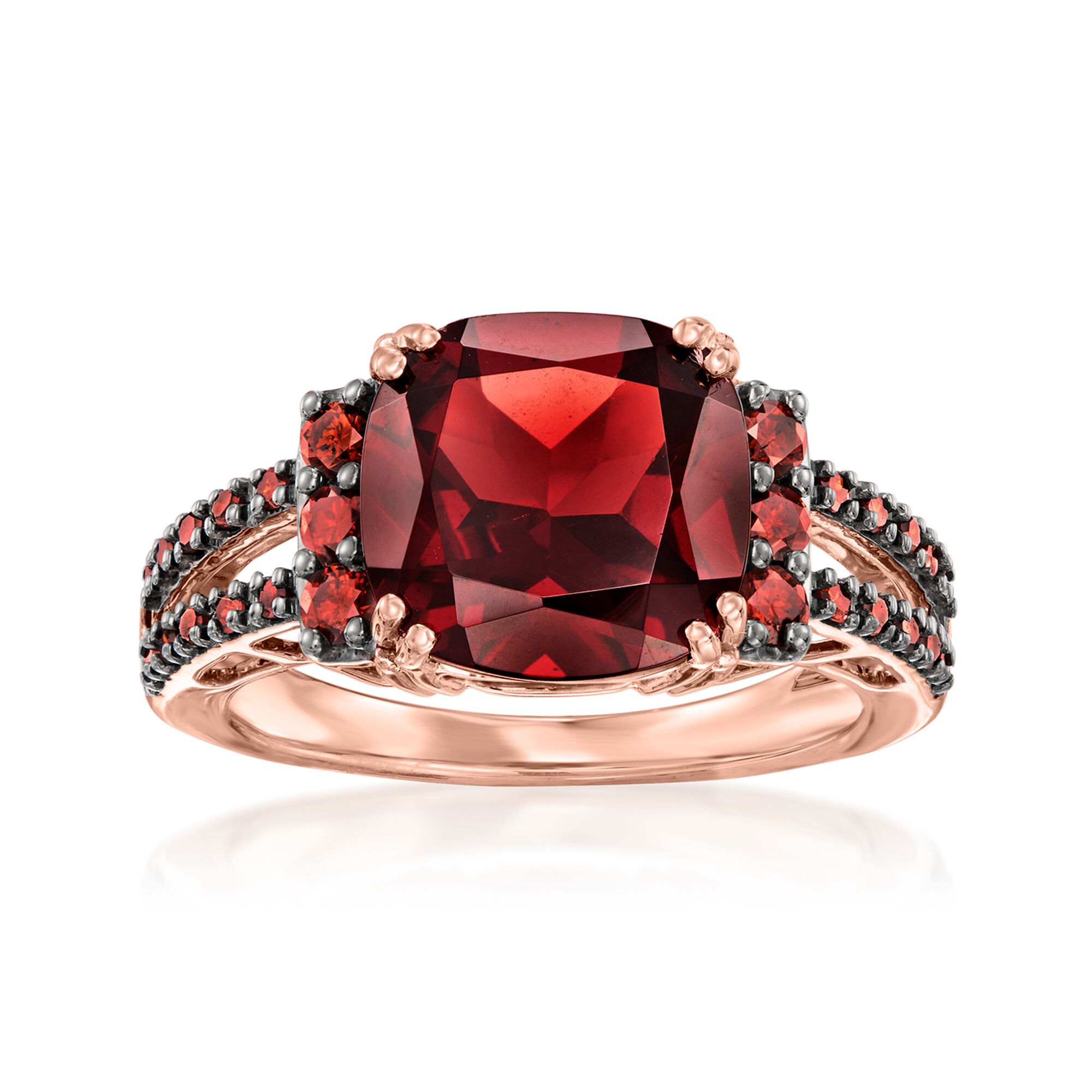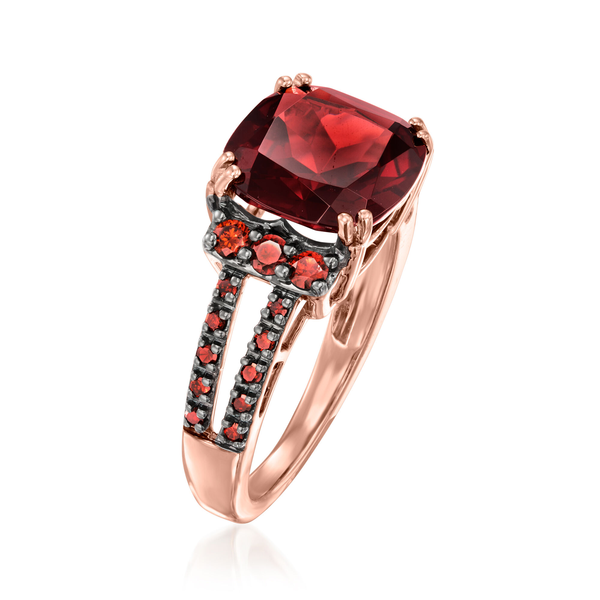 4.00 Carat Garnet and .31 ct. t.w. Red Diamond Ring in 14kt Rose Gold
