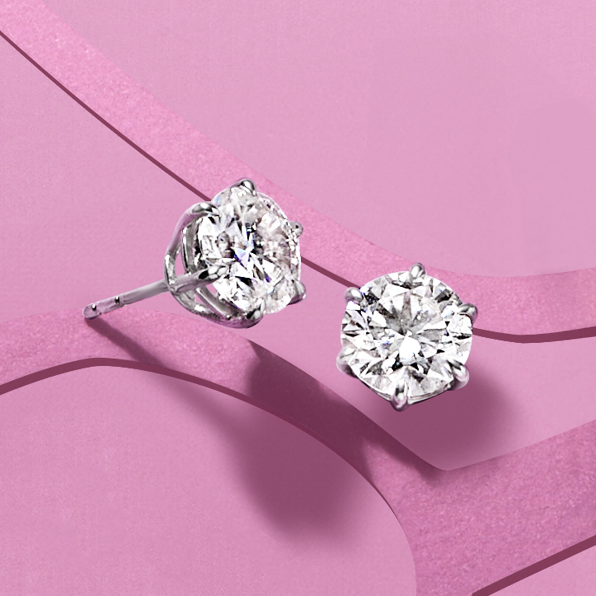Round Lab-Grown Diamond Flat-Back Stud Earrings in 14kt White Gold