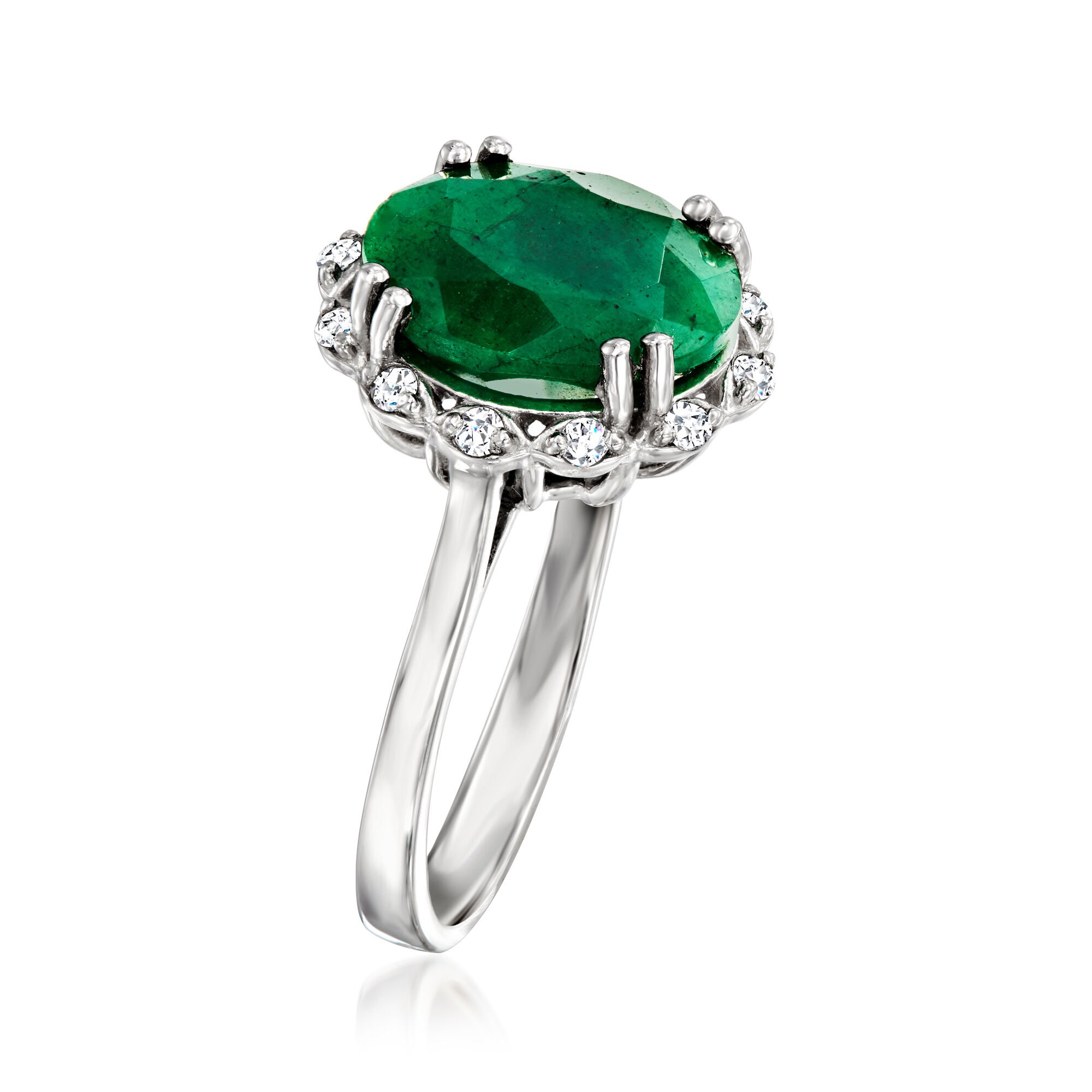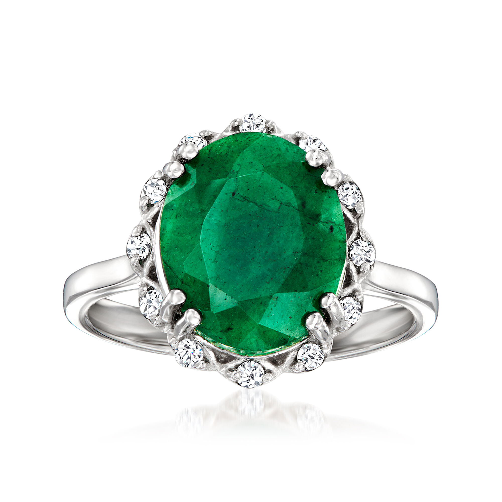 4.20 Carat Emerald Ring with .10 ct. t.w. White Topaz in Sterling Silver