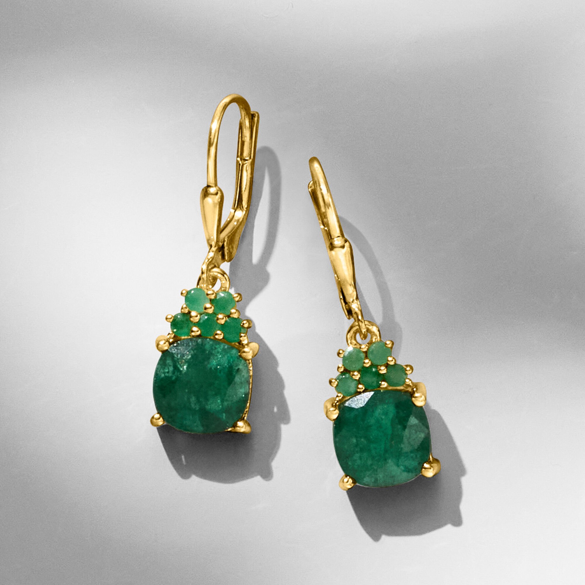 4.20 ct. t.w. Emerald Drop Earrings in 18kt Gold Over Sterling