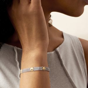 18kt Gold Over Sterling Byzantine Beaded-Edge Bracelet with Sterling Silver