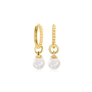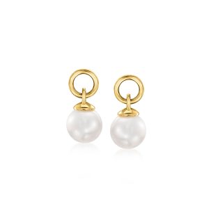 4-4.5mm Cultured Pearl Hoop Charms in 14kt Yellow Gold