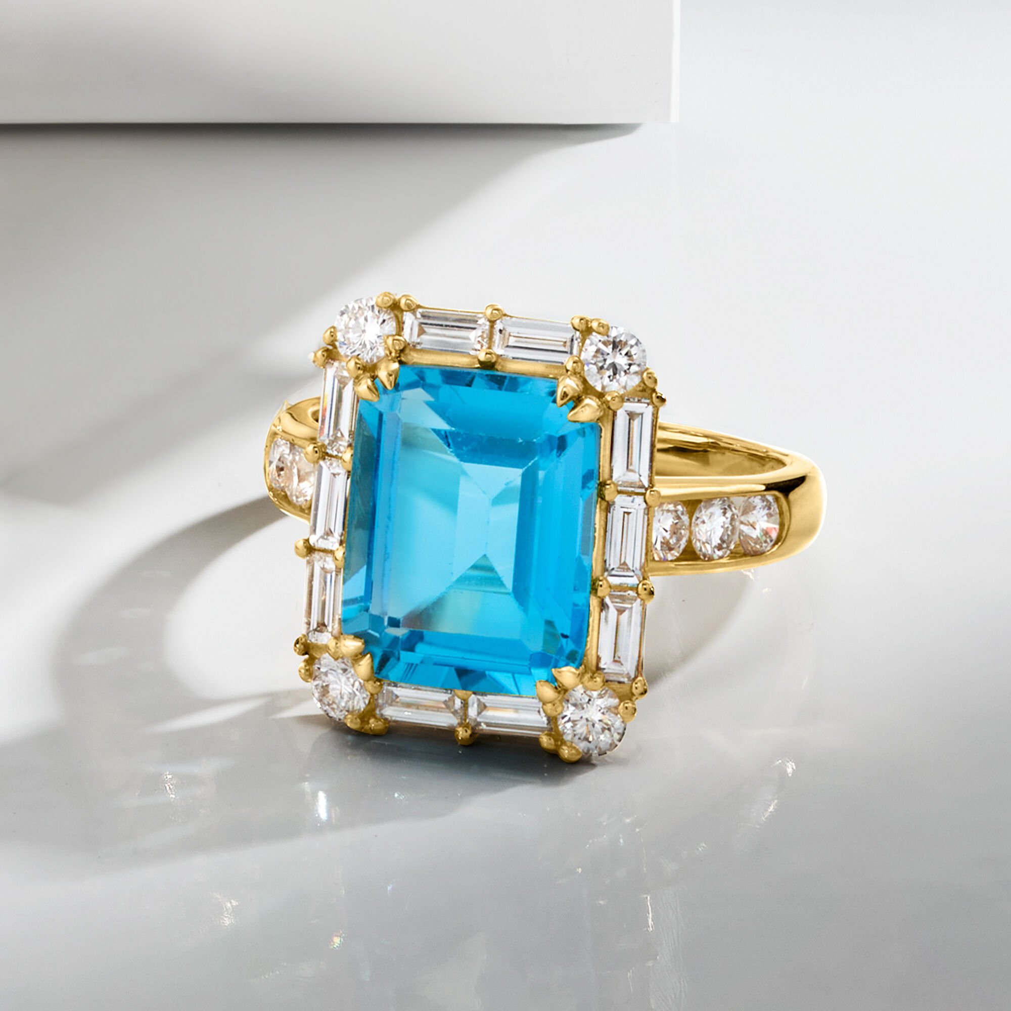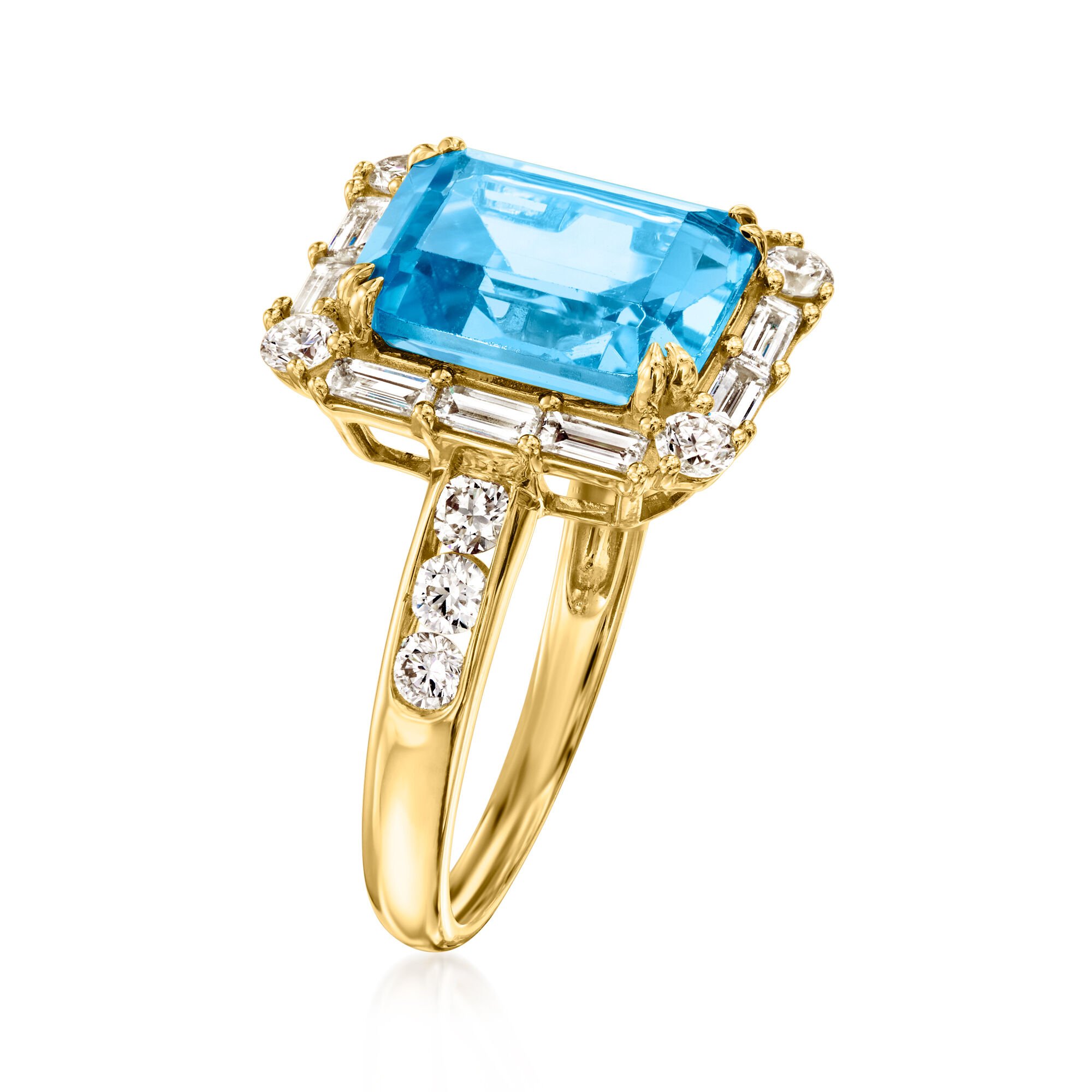 4.50 Carat Swiss Blue Topaz Ring with 1.00 ct. t.w. Lab-Grown Diamonds in 14kt Yellow Gold