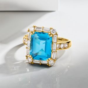 Topaz ( Color: Swiss Blue, Quantity: 1, Shape & Cutting Style: Emerald, Weight: 4.50 carats, Size: 9×11 mm) |