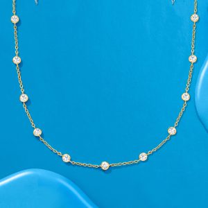 4.50 ct. t.w. CZ Station Necklace in 18kt Gold Over Sterling