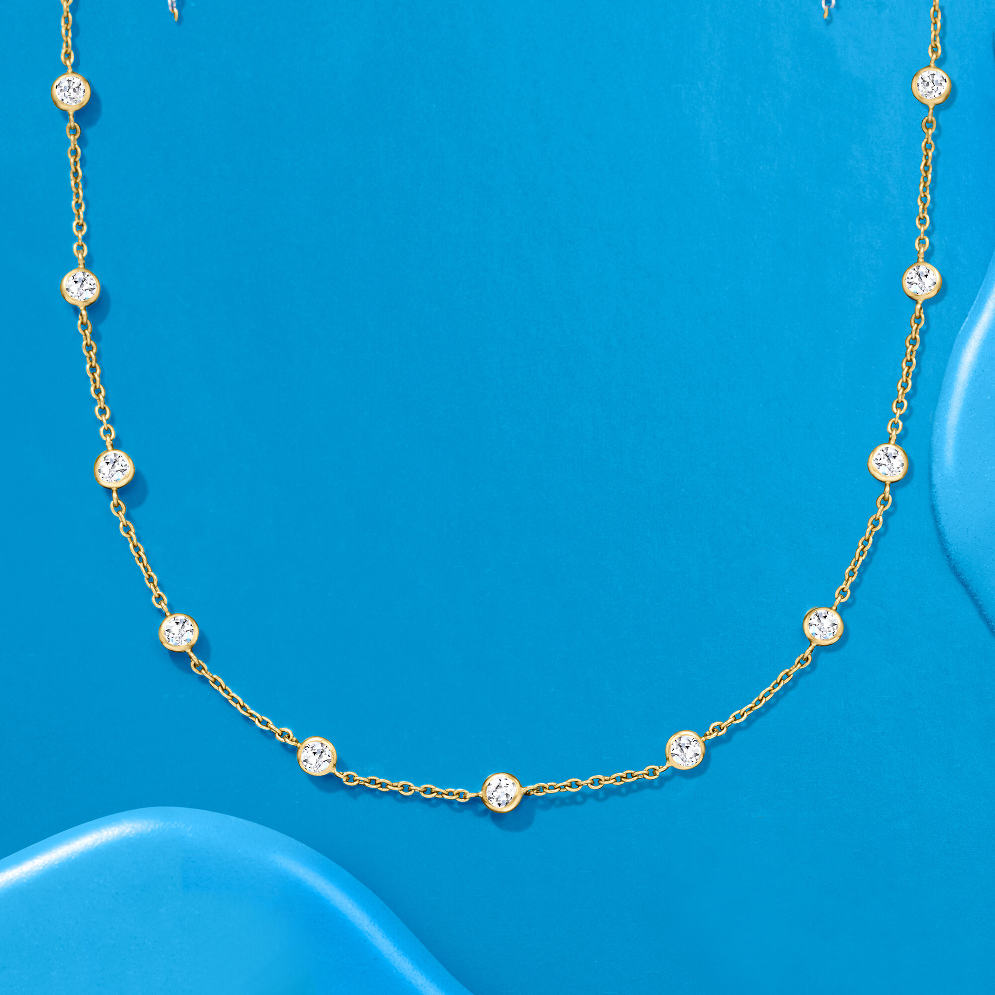 10.00 ct. t.w. Bezel-Set CZ Station Necklace in 18kt Gold Over Sterling