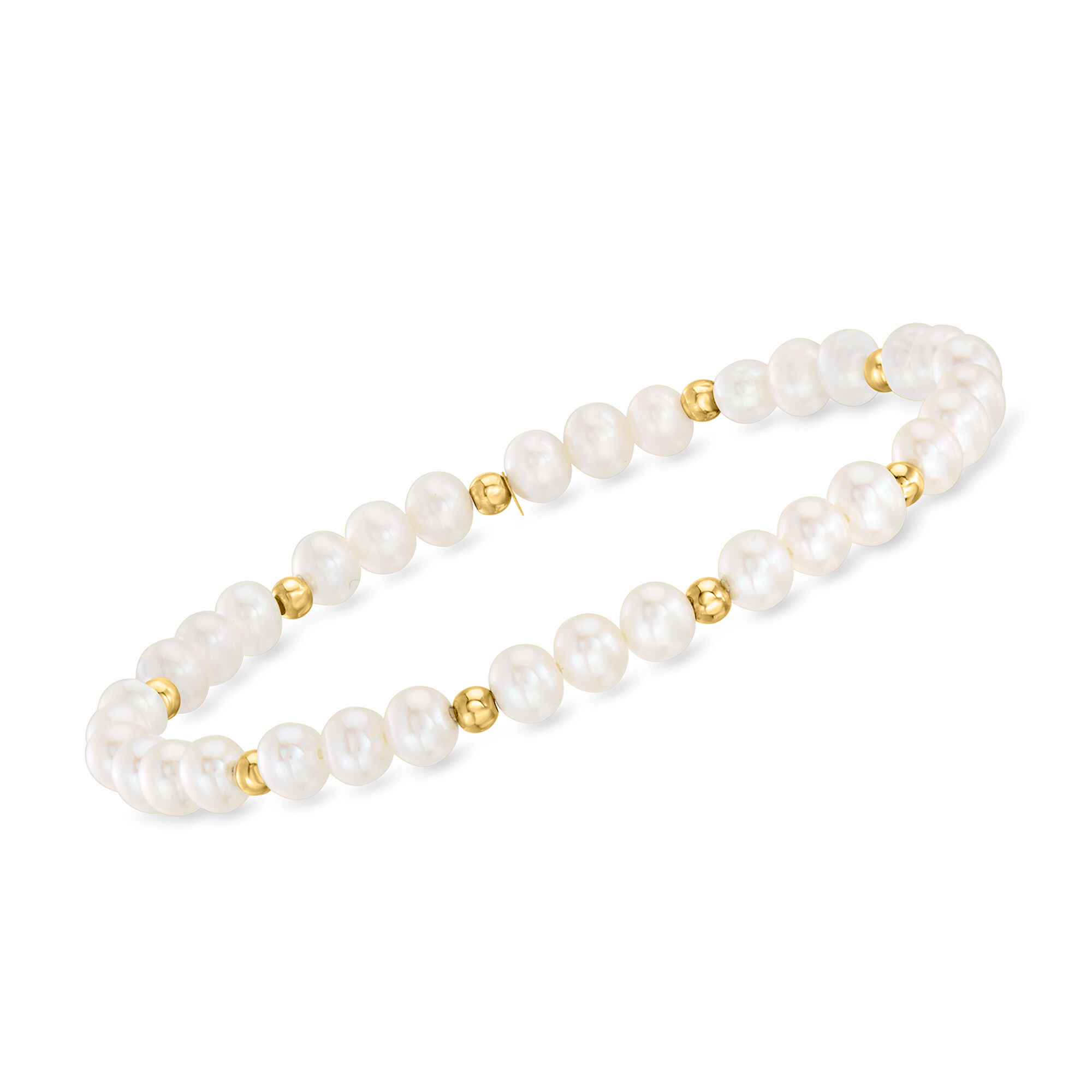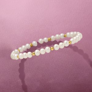 4-5mm Cultured Pearl and 14kt Yellow Gold Bead Stretch Bracelet
