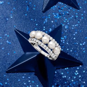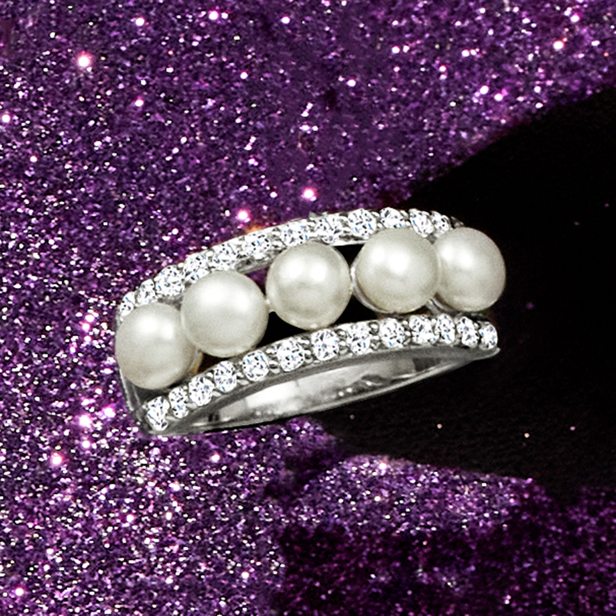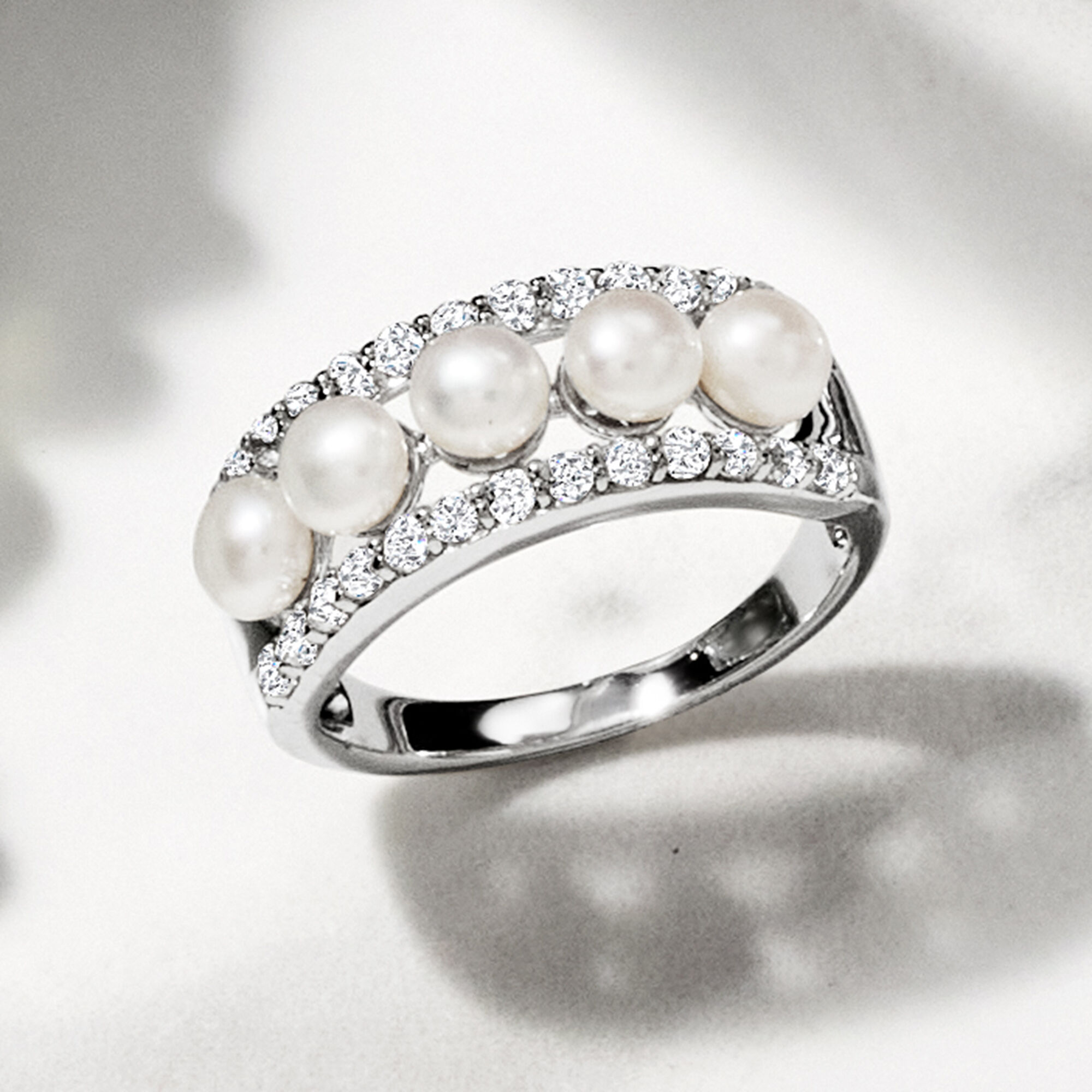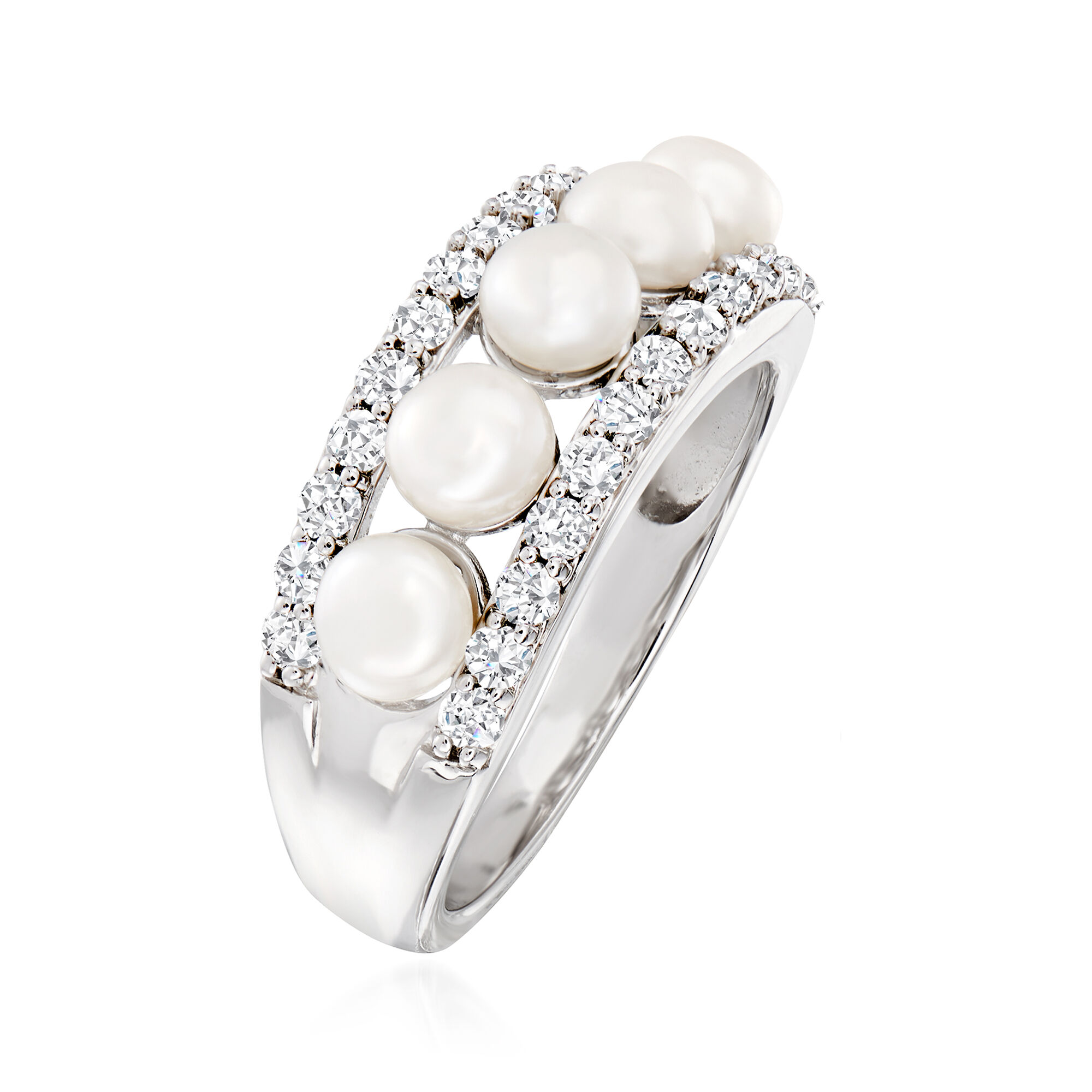 4.5mm Cultured Pearl and .70 ct. t.w. White Topaz Ring in Sterling Silver