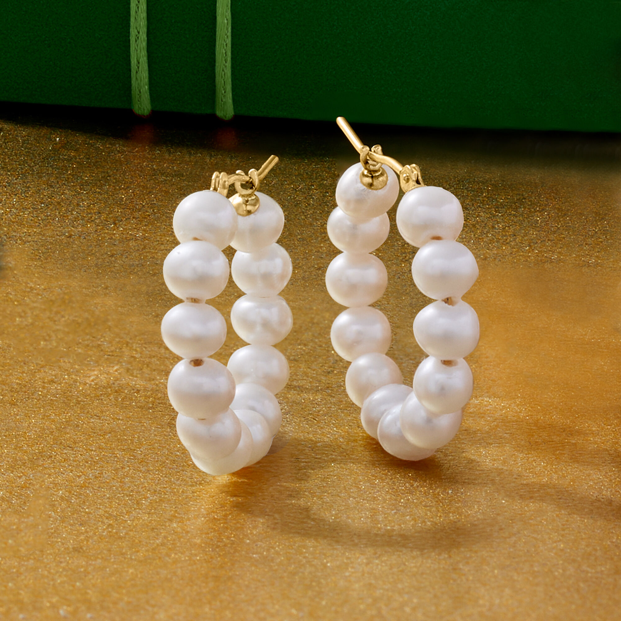 8-9mm Cultured Pearl Double-Hoop Earrings in Sterling Silver. 1″