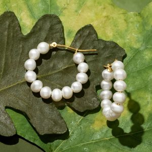 4-5mm Cultured Pearl Hoop Earrings in 14kt Yellow Gold. 7/8″