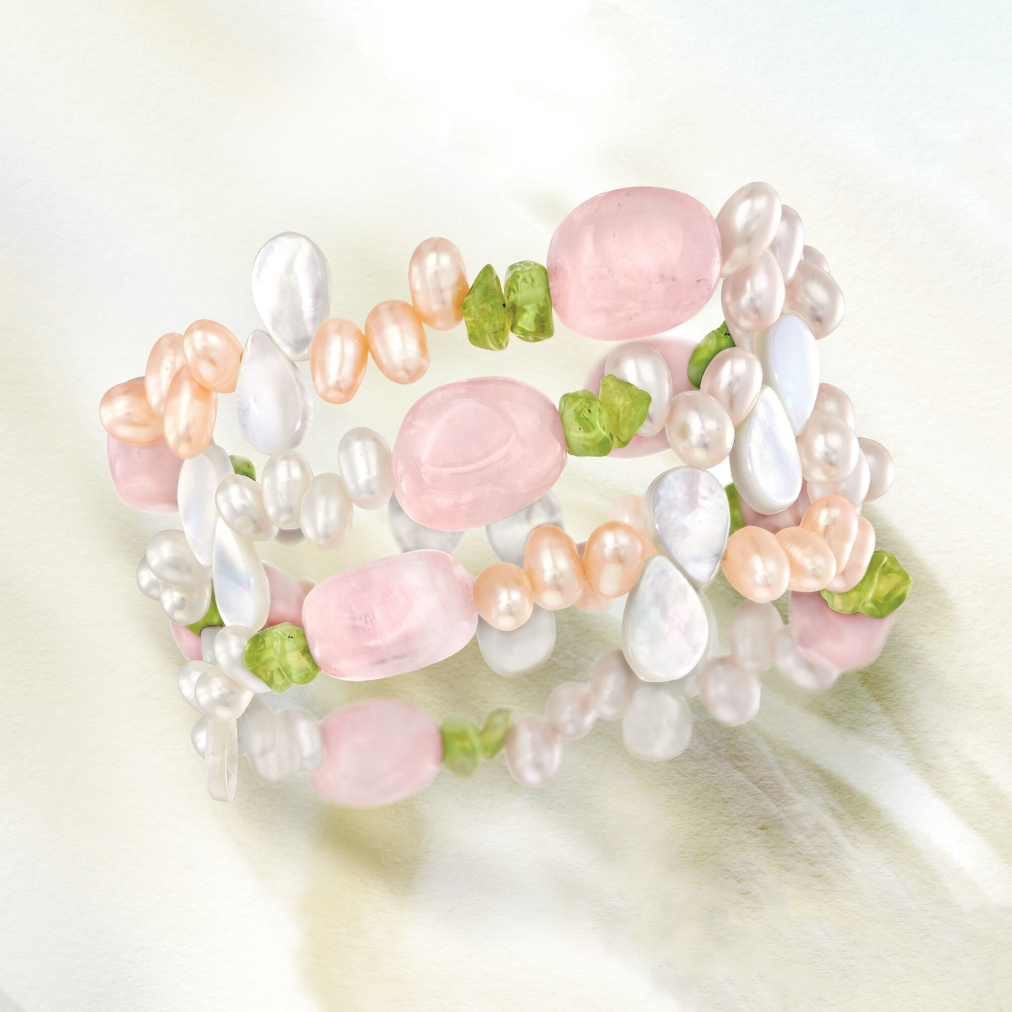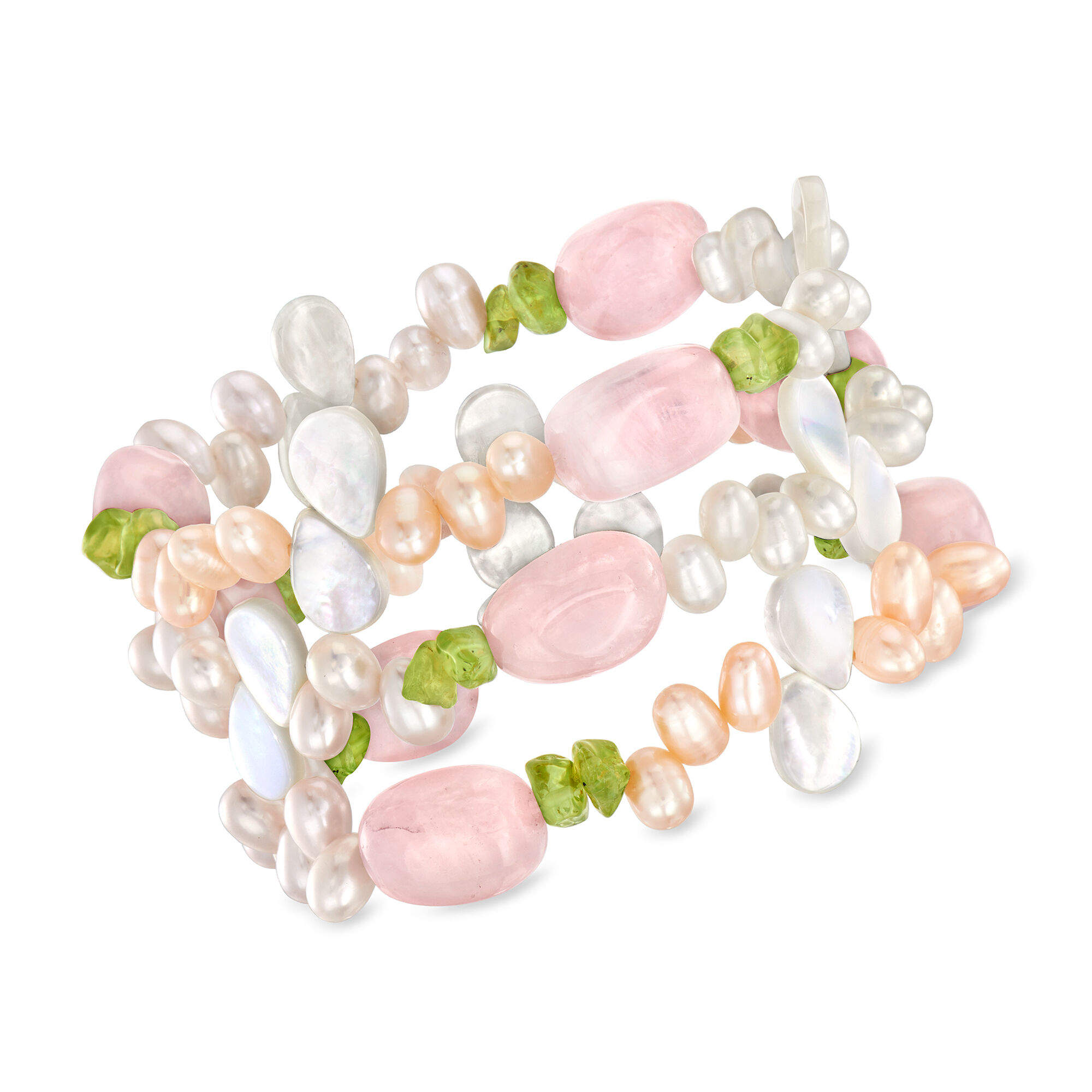 4-5mm Multicolored Cultured Pearl and Multi-Gemstone Jewelry Set: Three Stretch Bracelets
