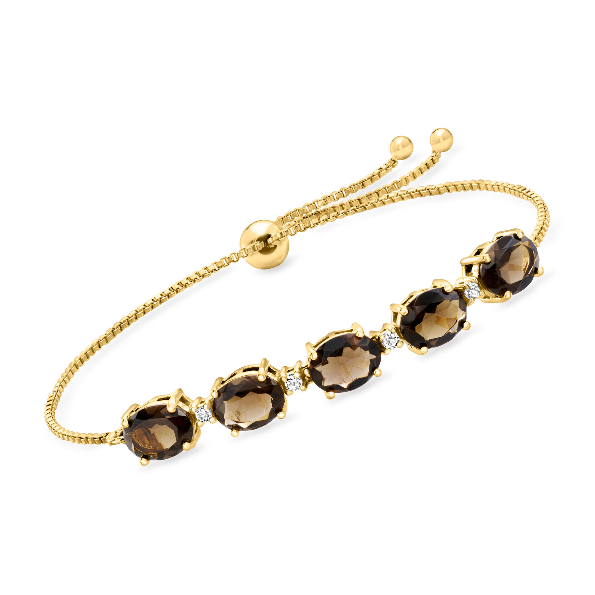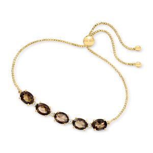 4.60 ct. t.w. Smoky Quartz and .10 ct. t.w. White Topaz Bolo Bracelet in 18kt Gold Over Sterling