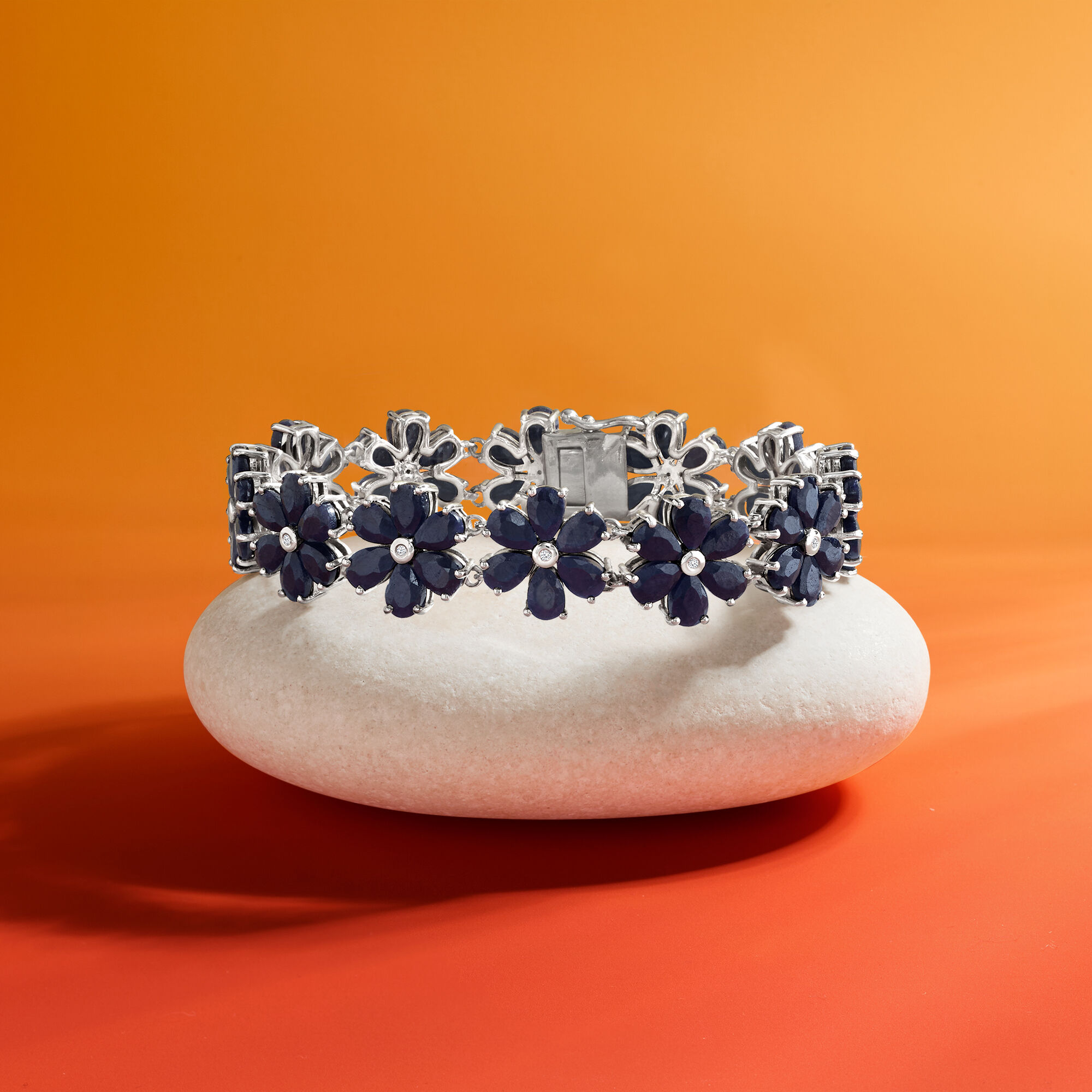 45.00 ct. t.w. Sapphire and .10 ct. t.w. Diamond Flower Bracelet in Sterling Silver