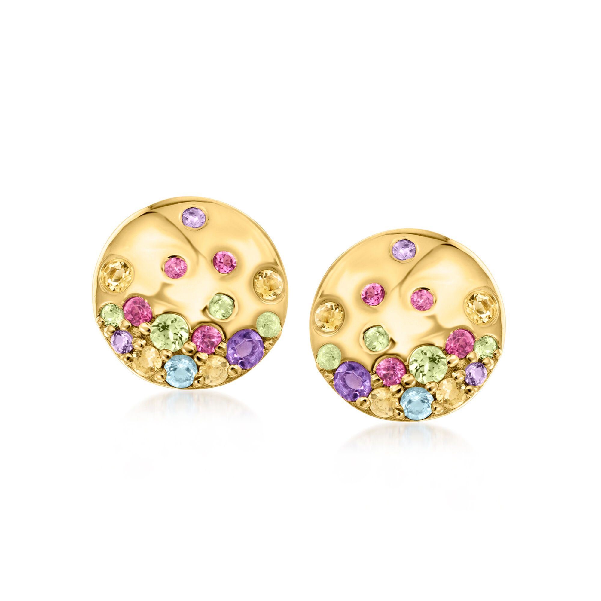 .46 ct. t.w. Multi-Gemstone Disc Earrings in 18kt Gold Over Sterling