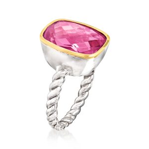5.00 Carat Pink Quartz Ring in 14kt Yellow Gold and Sterling Silver