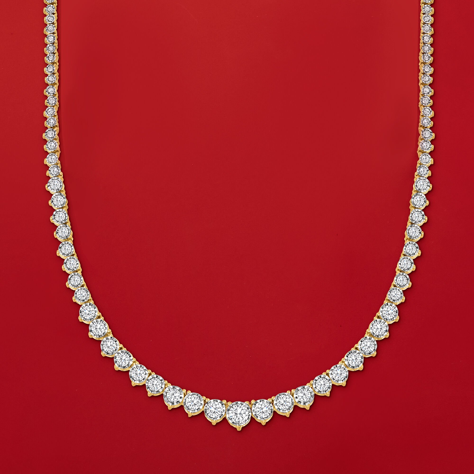 15.00 ct. t.w. Graduated Lab-Grown Diamond Tennis Necklace in 14kt Yellow Gold