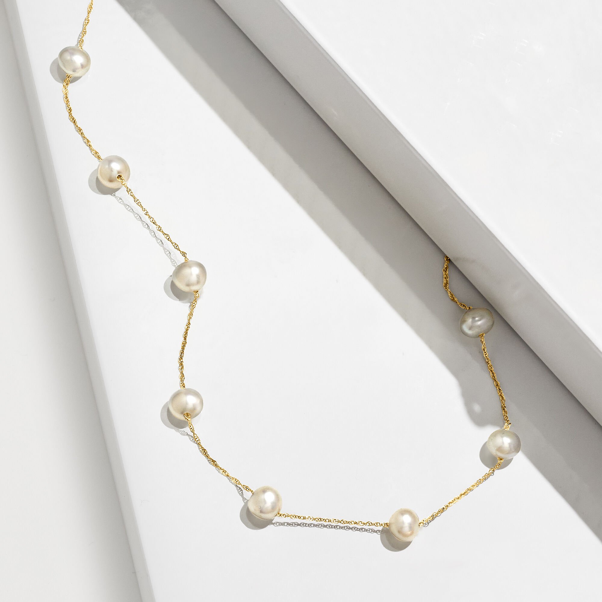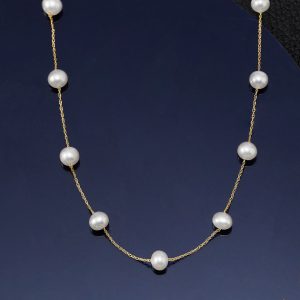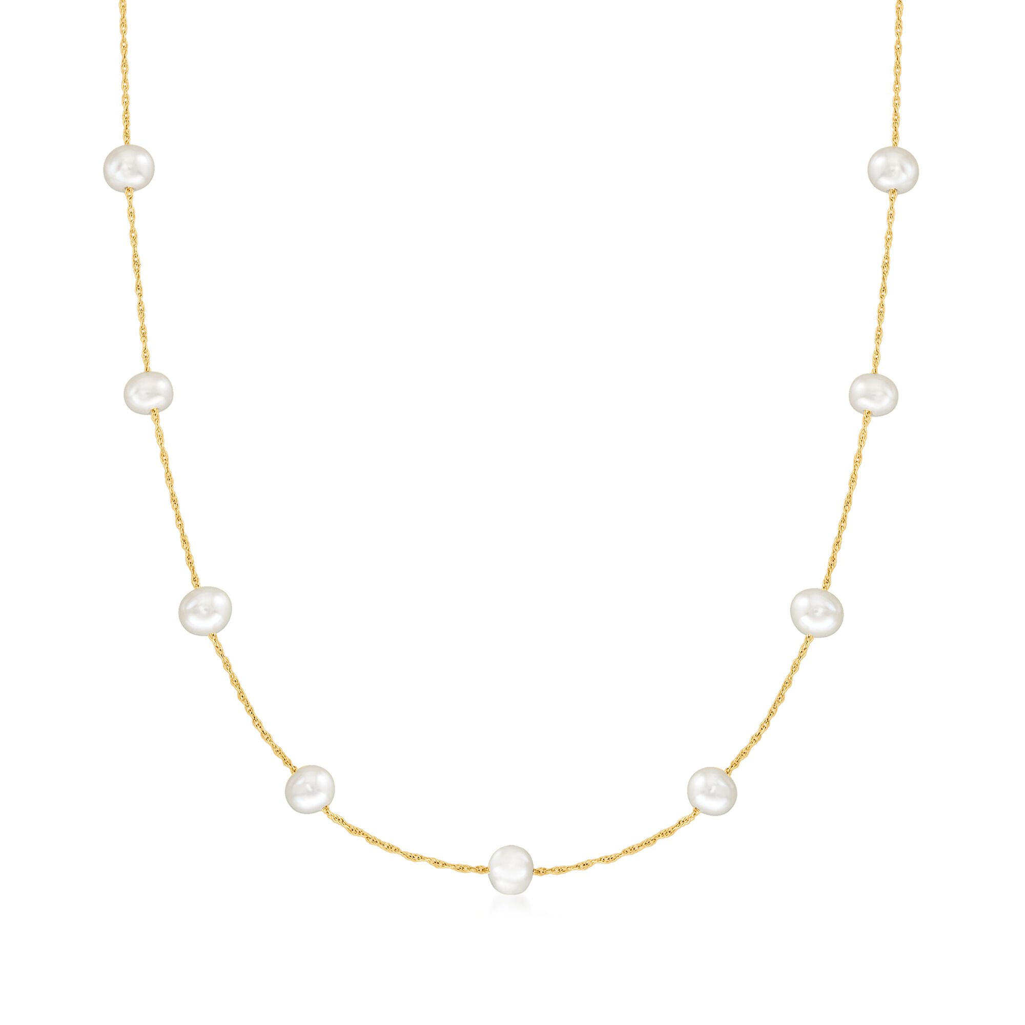 5-5.5mm Cultured Pearl Station Necklace in 14kt Yellow Gold