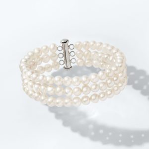 5-6mm Cultured Pearl Three-Strand Bracelet with Sterling Silver