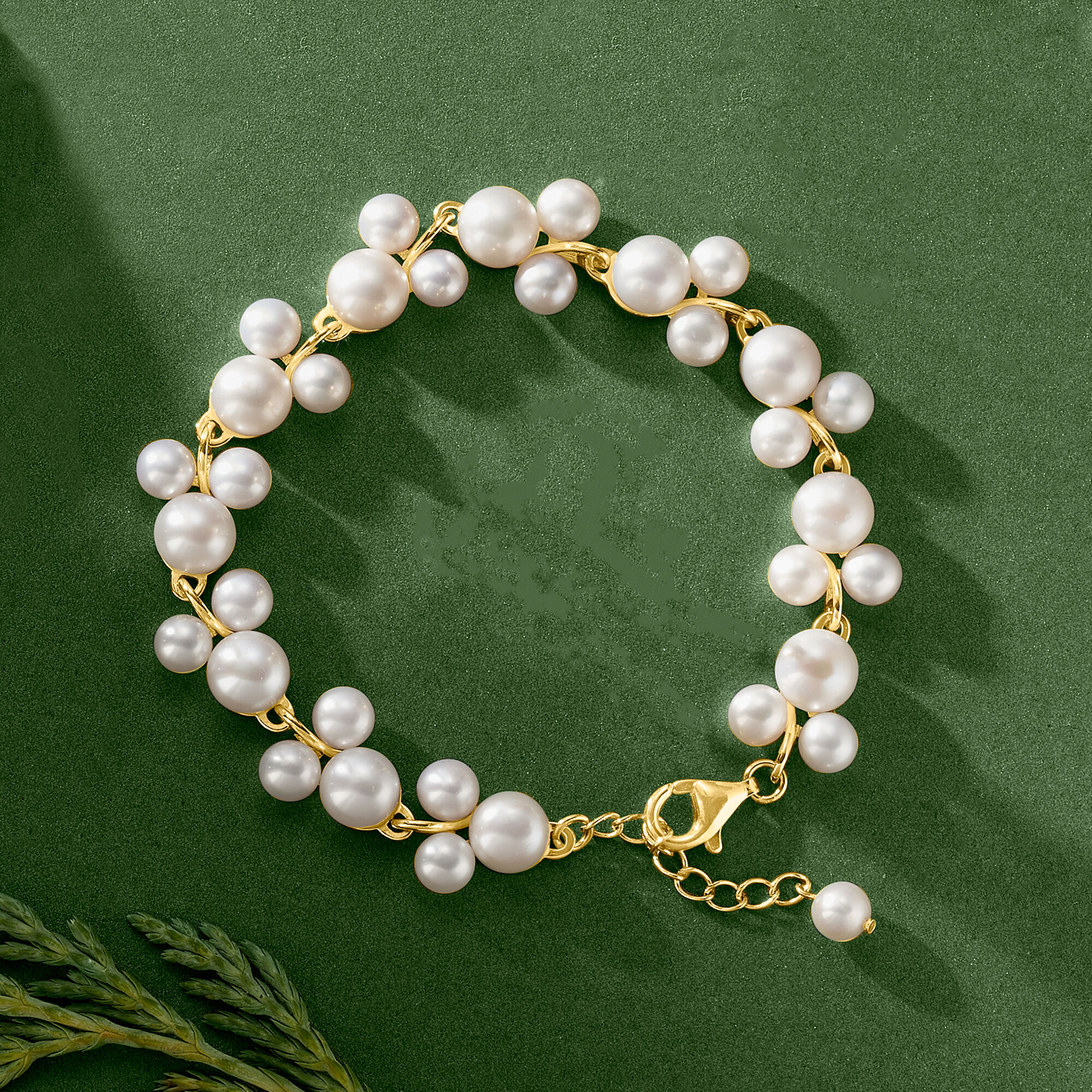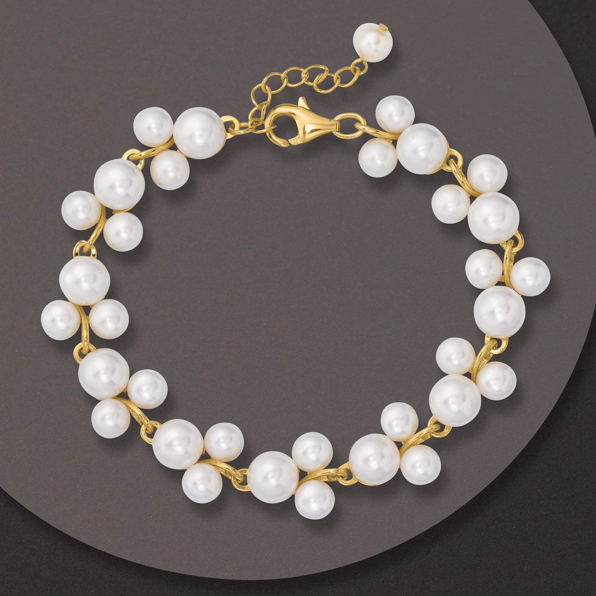 5-7.5mm Cultured Pearl Trio Bracelet in 18kt Gold Over Sterling Silver