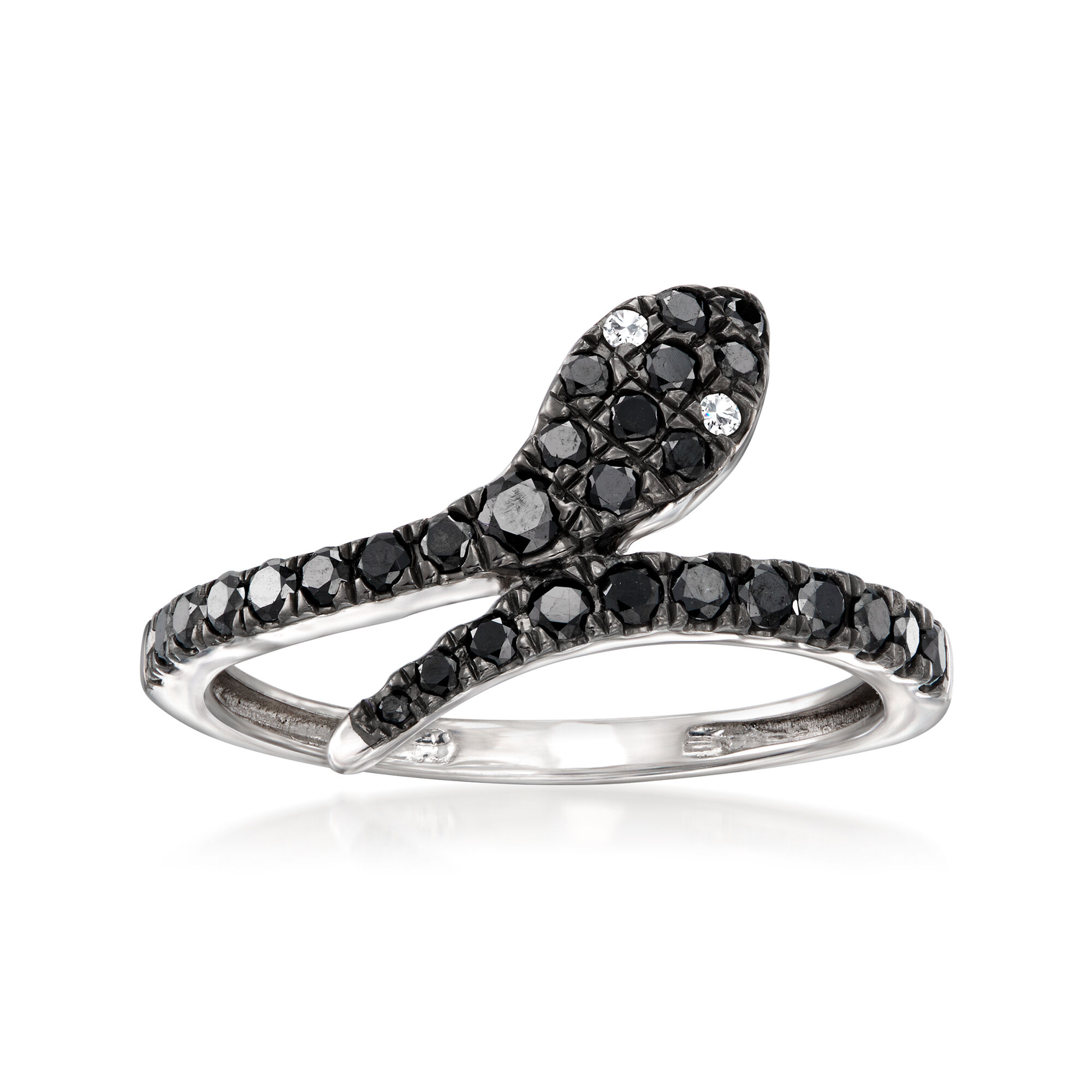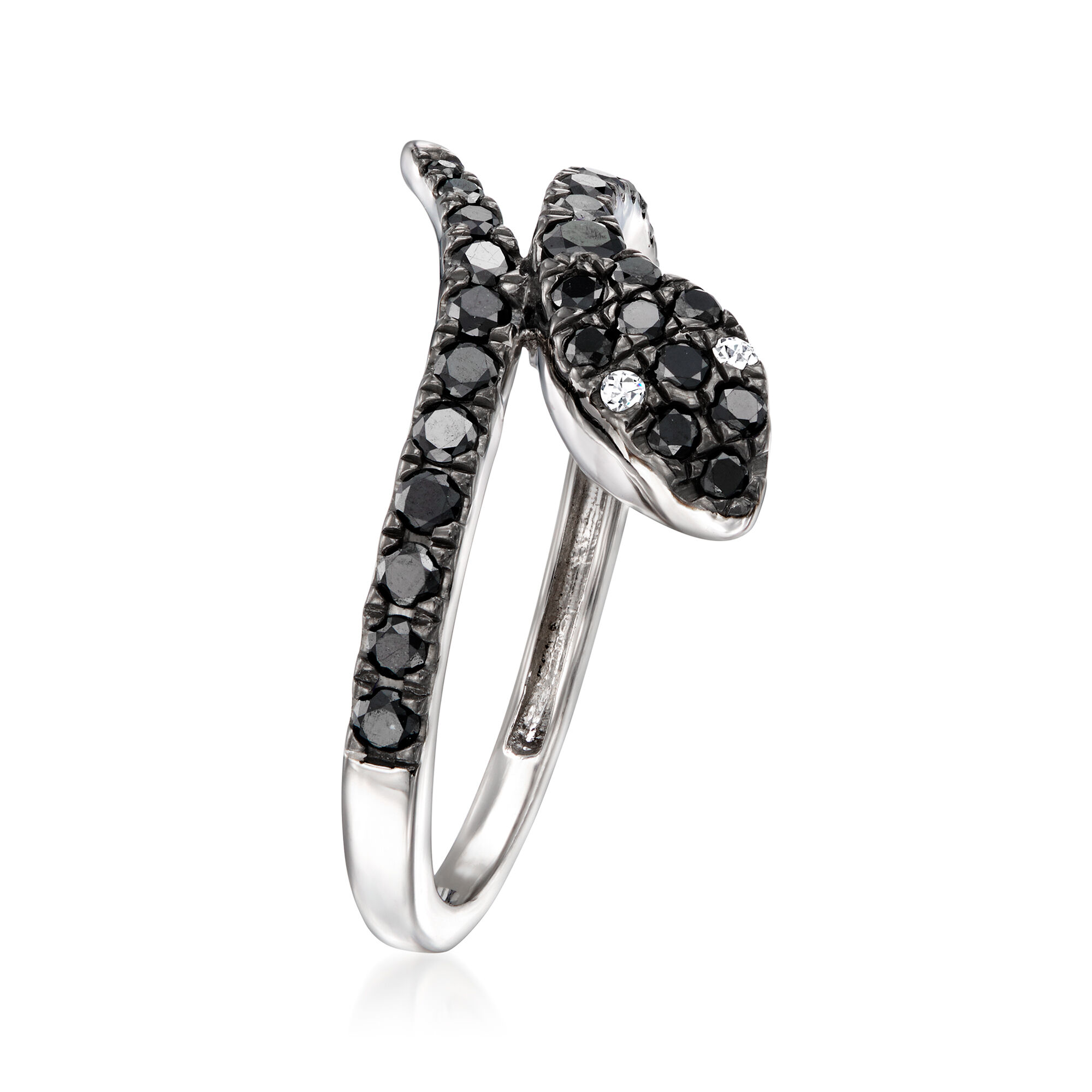 .50 ct. t.w. Black and White Diamond Snake Bypass Ring in Sterling Silver