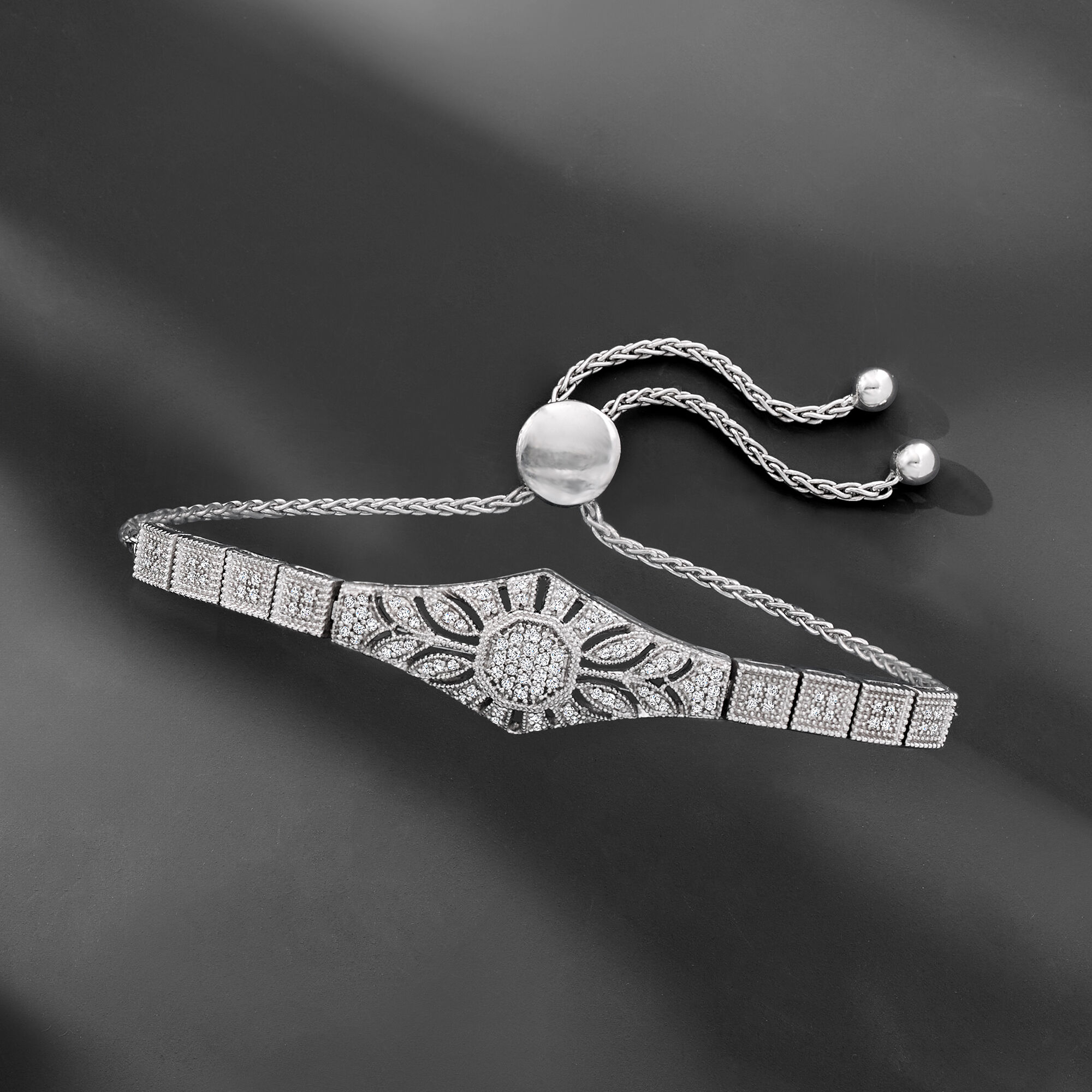 .50 ct. t.w. Diamond Floral Openwork Bolo Bracelet in Sterling Silver