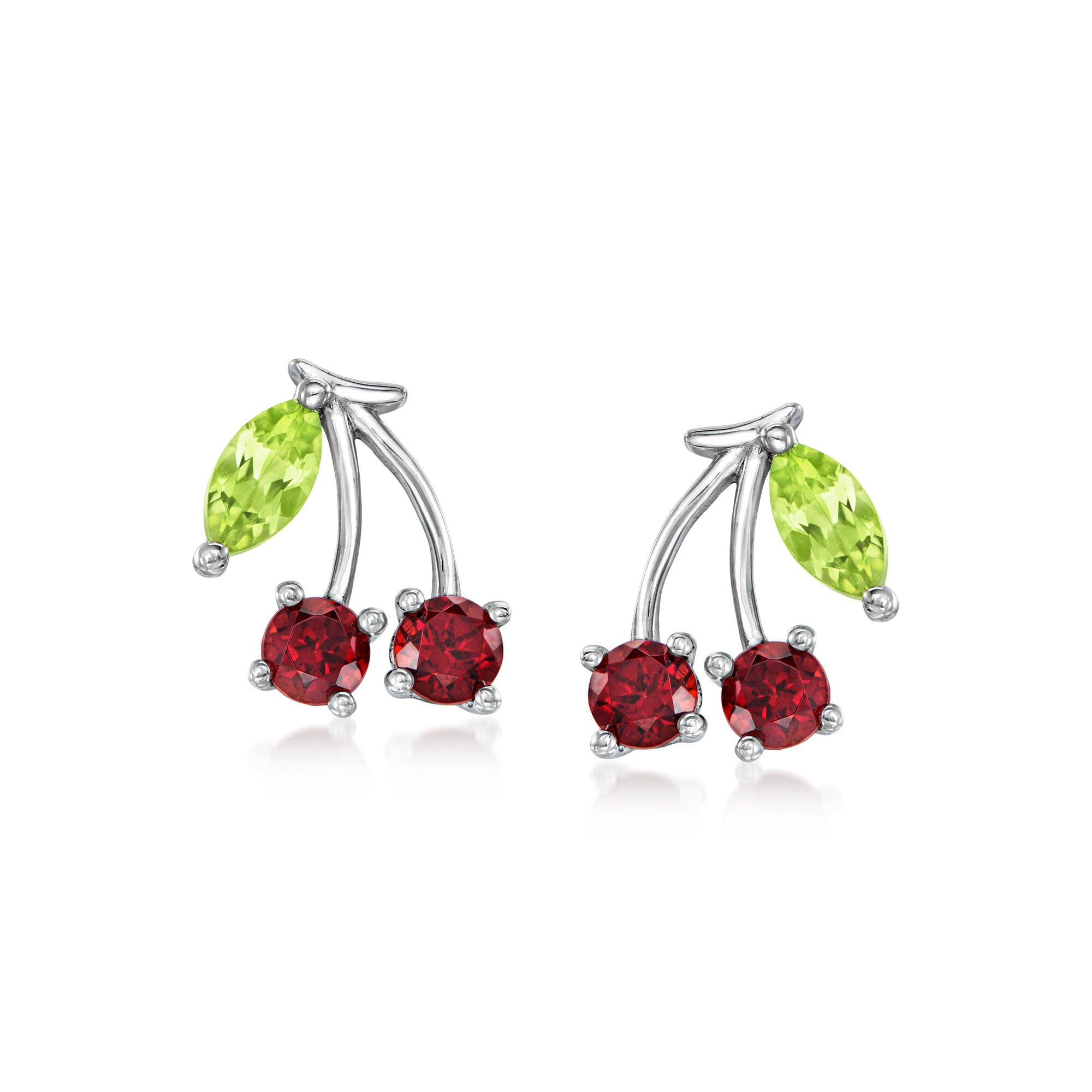 .50 ct. t.w. Garnet and .20 ct. t.w. Peridot Cherry Stud Earrings in Sterling Silver. Stud Earrings