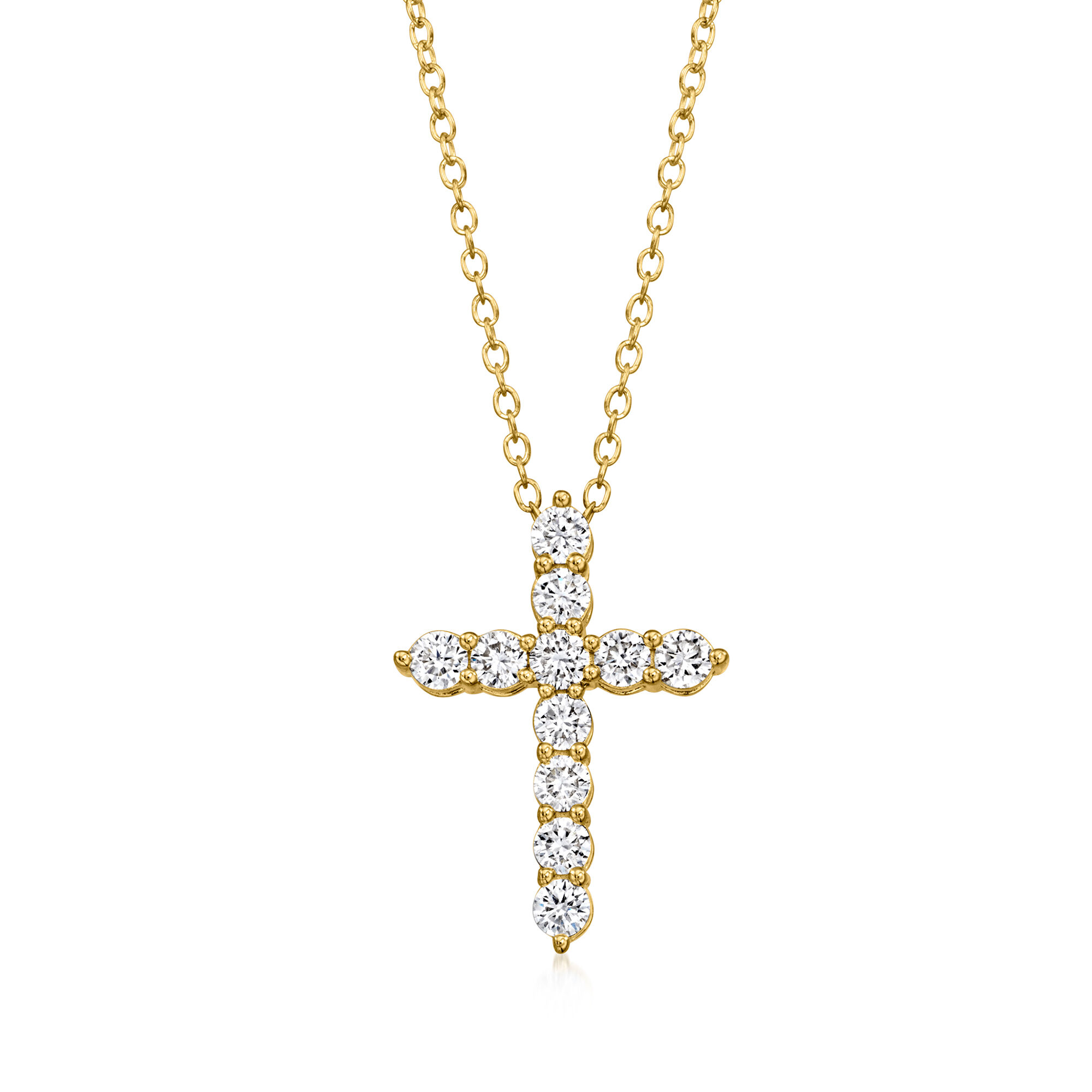 1.00 ct. t.w. Lab-Grown Diamond Cross Pendant Necklace in 14kt Yellow Gold